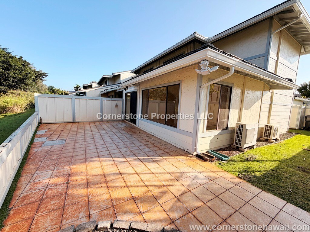 Enjoy lvg in this spacious partially furnished, freshly painted, 2 bedroom, 2.5 bathroom, 2 pkg townhouse w/all new LVP flrs upstairs in the Mililani Pinnacle complex This end unit feat a lrg patio w/no neighbors behind the unit & a side yrd. It is near schools, shop ctrs, parks, rests, golf course, & Wheeler/Schofield Military Bases UNIT FEATURES: - FullSz W/D - DW - Dispo - Fridge w/Ice Mkr&Water Dispenser - Electric S/O - Rng Hood - Micro - Split ACs & CFs - Kitchen Bar & Breakfast Nook - Fenced Yard - Open Patio - Curtain Rods - Laminate, Ceramic, & New LVP (upstairs) Flrs - Access to MTA Community Amenities (upon request) UTILITIES: - Included Yrd svc - Tenant Responsibility Electric, Cbl, Water/Sewer, Phone, Int, Pest, Gas (if applicable) LEASE TERMS: - Pro cleaning req at move out by approved vendor of Cornerstone Properties (CSP) - Renter's insurance req w/$300,000 liability coverage & CSP listed as adtl interest - 18+ must apply - App fee: $35 (Non-refundable) Visit our website to apply *DISCLAIMER: Cornerstone Properties is not responsible for any inaccuracies or misprints on this website or other websites. Call to inquire availability