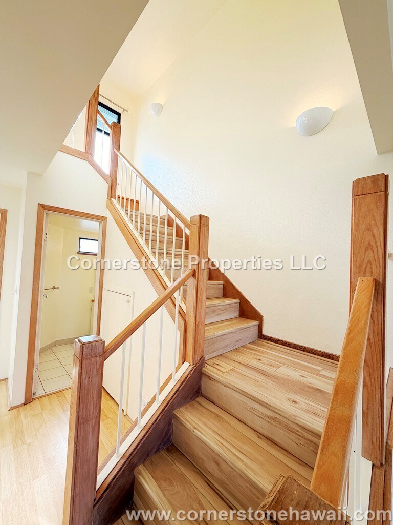 Enjoy living in this spacious partially furnished, freshly painted, 2 bedroom, 2.5 bathroom, 2 parking townhouse with all new luxury vinyl flooring upstairs, in the Mililani Pinnacle complex in Mililani. This end unit features a large patio with no neighbors behind the unit, and a side yard. It is near schools, shopping centers, parks, restaurants, golf course, and Wheeler & Schofield Military Bases. VIRTUAL TOUR: PROPERTY DETAILS: - Unit Type: 2-Story Townhouse, End Unit - Approx. Square Footage: 1369 - Year Built: 1990 - Bedrooms: 2 - Bathrooms: 2.5 - Parking: 2 car garage plus driveway UNIT FEATURES: - Full Size Washer/Dryer - Dishwasher - Disposal - Refrigerator with Ice Maker and Water Dispenser - Electric Stove/Oven - Range Hood - Microwave - 3 Split ACs in Living Room and Both Bedrooms - 5 Ceiling Fans in Breakfast Nook, Dining Area, Living Room, and Both Bedrooms - Kitchen Bar - Breakfast Nook - Fenced Yard - Open Patio - Window Coverings: Curtain Rods - Flooring: Laminate, Ceramic, & New Luxury Vinyl Planks (stairs, upstairs hallway, bedrooms and bathrooms) AMENITIES: - Guest Parking - Access to MTA Community Amenities (upon request) - Small Covered Recreation Area - BBQ Area UTILITIES: - Included: Yard service. - Tenant Responsibility: Electricity, Cable (Hawaiian Telcom), Water/Sewer, Phone, Internet, Pest, Gas (if applicable), & maintaining yard between services. LEASE TERMS: - No smoking - Sorry, No pets - Available Date: NOW - Lease Length: 6 months – 1 year - Professional cleaning required upon move out by an approved vendor of Cornerstone Properties. - Renter's insurance required: with $300,000 liability coverage and Cornerstone Properties listed as an additional interest. - All adults 18 years old and older must apply. - Application fee: $35 (Non-refundable) Visit to apply. To inquire, email: PROPERTY CODE: 1605KAT Cornerstone Properties, LLC: RB-20789 *DISCLAIMER: Cornerstone Properties is not responsible for any inaccuracies or misprints on this website or other subsequent websites and reserves the right to make changes without notice. Our rental units are considered available until an applicant is approved, the security deposit is paid, and the lease is executed. Please be advised that although a property is listed as available, it could be in the process of a lease signing or may have just been rented. Please call our office to inquire. All availability dates are approximate and not guaranteed.