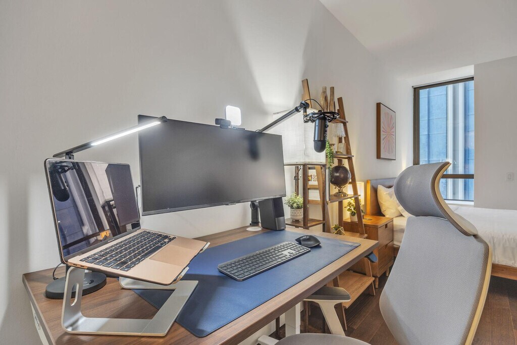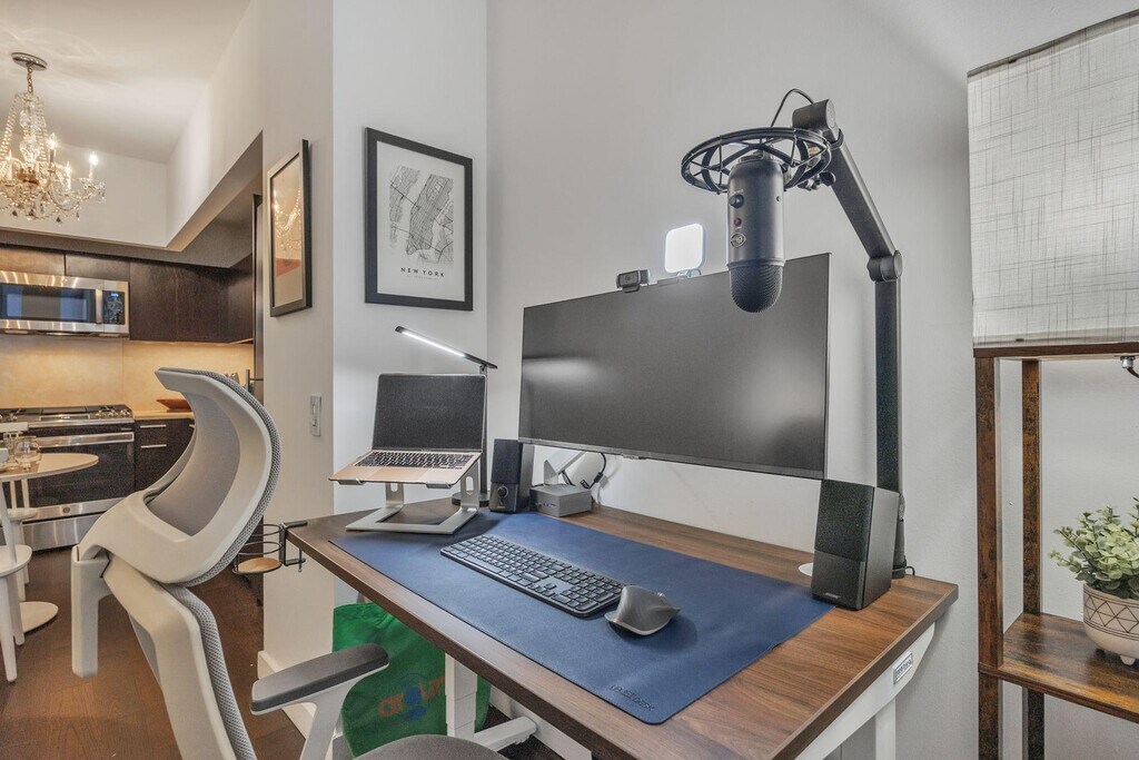 From the spectacular rooftop terrace views to the state-of-the-art fitness center, this apartment at 95 Wall is your home in the heart of the financial district, convenient to everything that matters. Stroll to work, jog to The Battery, or jump on the FDR, this is the luxurious and comfortable space you've been looking for. Custom designed for the remote worker looking for a comfortable and inspiring environment in which to be productive, this newly renovated unit includes a fully equipped kitchen, king-size mattress, full bathroom, smart TV, and all utilities. Parking is not provided, but may be available via the attached public indoor garage and guests must coordinate independently. Other garage parking is also available nearby. Located in the heart of the financial district, this apartment offers unparalleled convenience. With a Walgreens Pharmacy on the ground floor and Starbucks Coffee on the same block, daily essentials are just steps away. The apartment is one block from the ferry port, making commuting a breeze. The building is currently undergoing renovation and is expected to continue until Spring 2026. Internet speeds are not guaranteed and may fluctuate based on your computer model and the router location. Early check-in from 9am-3pm will incur a fee of $75 and before 9am will incur a fee of 1 full night's rent based on selected dates. Late check-in after 8pm will incur a fee of $50. Late check-out from 11am-3pm will incur a fee of $75 and after 3pm will incur a fee of 1 full night's rent based on selected dates. Includes private high-speed internet, a standing desk, work chair, 34-inch ultra-wide monitor, microphone, webcam, computer speakers, LED streaming light, green screen, keyboard, mouse, laptop stand, and a TOTU 16-in-1 Triple Display USB-C 3.1 Docking Station. A laptop computer is not included. [SI]