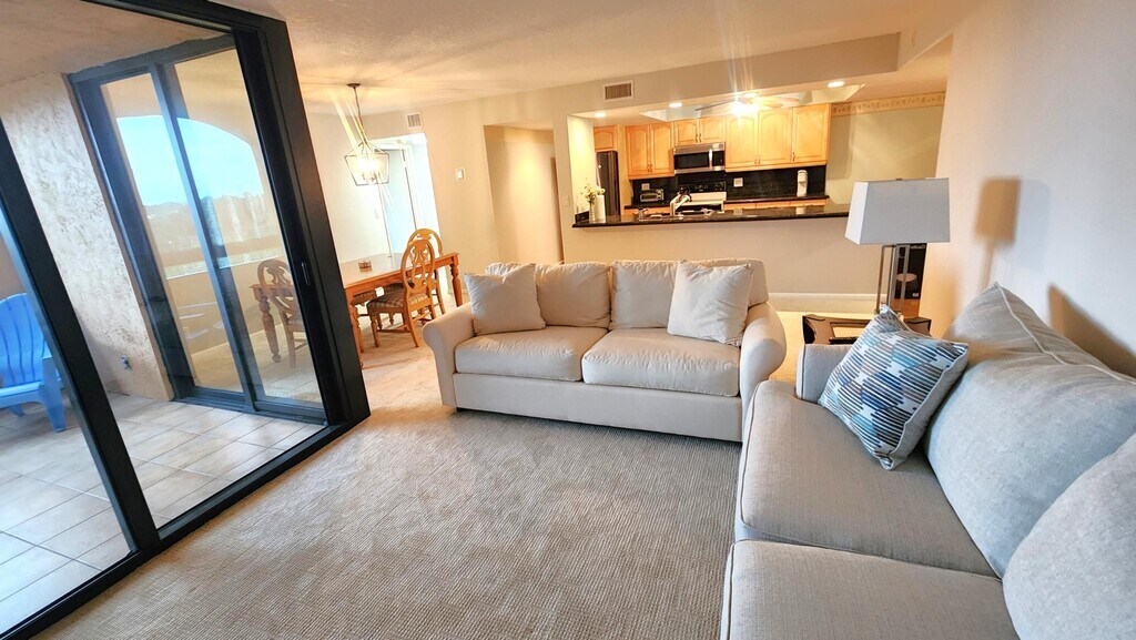 Awesome off seasonal fully furnished rental. Top floor, available through December 2025, tastefully furnished, recently painted, open kitchen overlooking the living area. Great lake views, all impact windows, immaculate. 30 days minimum, rent includes water, cable, wifi and monthly allowance for electric consumption. Walk to shopping and entertainment, minutes from I-95, FAU and downtown Delray. 2 pools, fitness, hot tub, clubhouse, and more, fast approval.