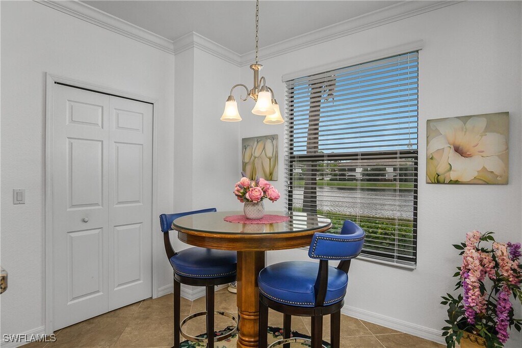 Enjoy plenty of natural light in this two bed+den/office,two bath END UNIT in Avellino at Treviso Bay. A panoramic lake view puts you in a Florida state of mind while you relax on your pavered screened lanai. Meticulous care and pride in this home is evident from the plank tile flooring to the custom lighting and window treatments. A one car garage offers convenience and protection from the sun for your vehicle. Visit the La Piscina restaurant and bar after a beautiful day at either the neighborhood pool or the Resort pool. The amenity rich clubhouse features tennis,pickle-ball,and a professionally staffed fitness center. Treviso Bay is located within 5 miles of Naples' Fifth Avenue and just a short drive to Marco Island.