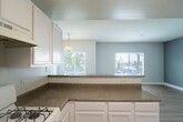 Here is a revised version written in a neutral, compliant style suitable for Las Vegas MLS: New flooring and baseboards throughout. Cabinets, shelves, and closets have been freshly painted. Gated upstairs unit with 2 bedrooms and 2 bathrooms. The living room opens to the kitchen, which includes a breakfast bar, refrigerator, stove, dishwasher, and shelving. Bedrooms are located on opposite sides of the unit. The primary bedroom features a walk-in closet and an attached bathroom with dual sinks and a tub/shower combination. The secondary bedroom has two closets, and the second bathroom includes a shower. A covered balcony off the living room overlooks the community pool and spa. Community amenities include two pools and two spas.