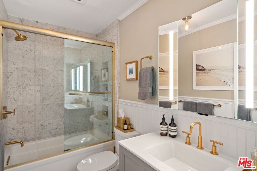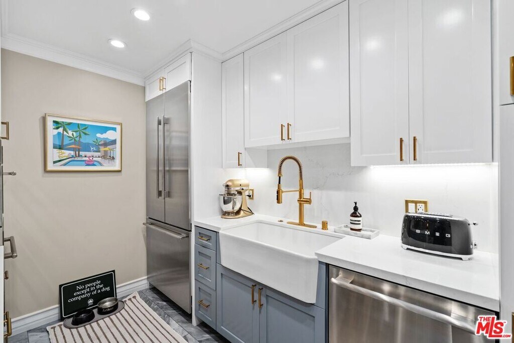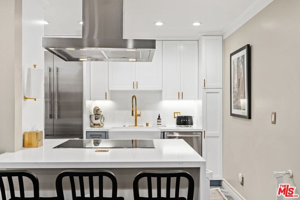 Experience the ultimate in California luxury living in this beautifully remodeled condo, just moments from the lively streets of West Hollywood. Step into a spacious living area, ideal for entertaining or relaxing after a long day. Custom built-ins frame your flat-screen TV while offering plenty of storage and display space for your books and decor. The open-concept layout flows effortlessly into a modern chef's kitchen, featuring Thermador appliances, quartz countertops, and a peninsula with seating, perfect for casual meals or hosting guests. The expansive primary suite boasts two walk-in closets with custom cabinetry and soft-close drawers, keeping your wardrobe impeccably organized. The adjacent well-appointed bathroom includes a large vanity with built-ins, a heated toilet seat, and a glass-enclosed shower and tub for ultimate relaxation. A second bedroom off the living space works beautifully as a guest room or home office. This home is enhanced with recessed lighting controllable with your phone, elegant fixtures, a built-in coffee bar with refrigerator drawer, in-unit laundry, and two mini-splits for dual-zone personalized comfort. The unit is conveniently located close to the pool, making it easy to enjoy a swim or soak up the sun. It also includes a secure underground parking space, with additional guest parking available. The complex also offers a gym and a stunning rooftop deck with panoramic views of DTLA and West Hollywood, perfect for work, relaxation, or entertaining. Situated in the Norma Triangle, mere minutes from the West Hollywood Park and the best shopping, dining, and nightlife the city has to offer, 960 Larrabee St is a modern retreat you'll love calling home! MLS# 26655785