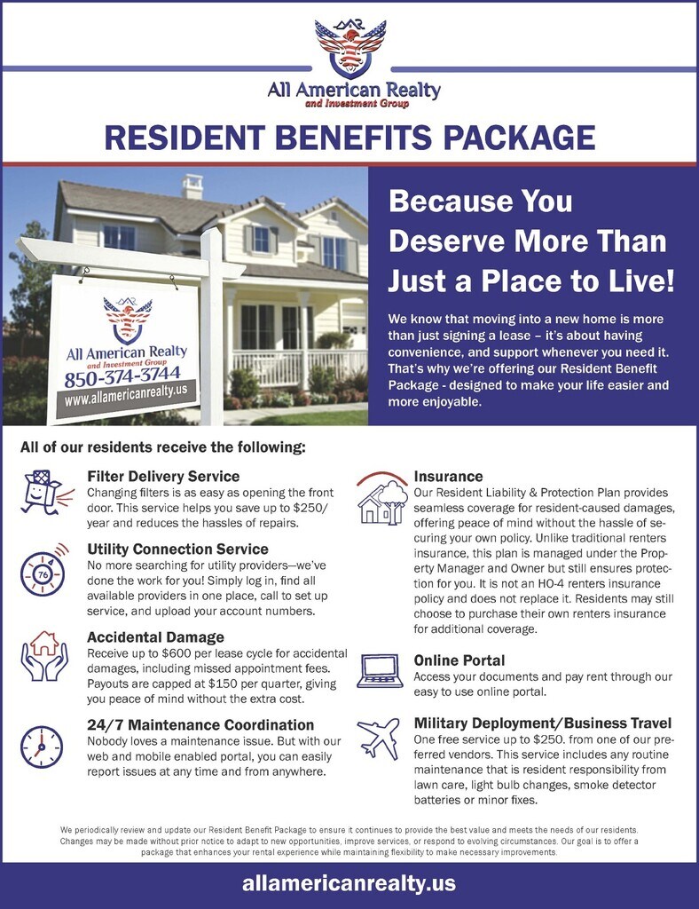 Graced with an inviting charm, 962 John Wayne Circle in Fort Walton Beach offers a delightful coastal retreat perfect for everyday living or a tranquil getaway. This spacious 1,306 sq ft home features three well-appointed bedrooms, providing ample space for relaxation and rest. With two full bathrooms, morning routines and evening unwinding become a breeze for everyone in the household. The thoughtful design ensures a natural flow between rooms, fostering an open and airy atmosphere that welcomes you home each day. Nestled in a vibrant community, this property offers the perfect blend of serenity and convenience, with local amenities just a short drive away. The home's exterior complements the inviting interior, creating a harmonious balance of style and comfort. . With its prime location in Fort Walton Beach, you'll have endless opportunities for adventure, relaxation, and creating cherished memories. Embrace the chance to make this charming house your new home and experience the best that coastal living has to offer. As part of the rental process, All American Realty requires a standard cleaning fee and a floor cleaning fee. These fees are calculated based on the home’s square footage and number of rooms and ensures every property meets our rent-ready standards and is delivered in move-in condition. All American Realty also includes a Resident Benefit Package in every lease. This required program is $65 per month and provides added convenience, protection, and services not offered in a typical rental. The total move-in amount includes the first month’s rent, the security deposit, the first month Resident Benefit Package, and the prepaid cleaning fees. By submitting your information on this page you consent to being contacted by the Property Manager and RentEngine via SMS, phone, or email.
