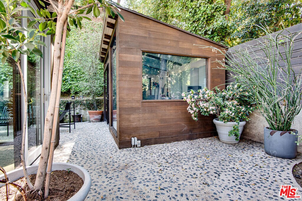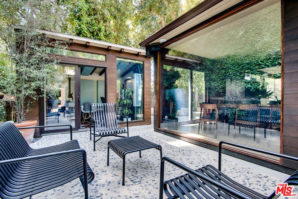 A mid-century jewel box with a separate music studio, constructed in 1960, epitomizing architectural elegance and modern refinement. Meticulously renovated, it presents a harmonious blend of vintage glam and contemporary luxury. Upon entering, you are greeted by distinctive architectural elements emblematic of the era, including clean lines, expansive windows that flood the interiors with natural light, and an astute use of space.The open floor plan masterfully integrates the living, dining, and kitchen areas, creating an ideal environment for both sophisticated entertaining and everyday living. The gourmet kitchen, a culinary enthusiast's dream, features premium appliances, sleek countertops, and ample storage.The residence comprises three thoughtfully designed bedrooms and three bathrooms, each exuding comfort and style. The primary suite serves as a serene retreat, complete with a spa-like ensuite bathroom.The outdoor space is equally inviting, perfect for both relaxation and social gatherings. A detached studio offers versatile use, ideal as a gym or office. Additional amenities include a laundry room, two-car garage, and tandem parking. This is Beverly Hills living at its zenith. MLS# 25616775