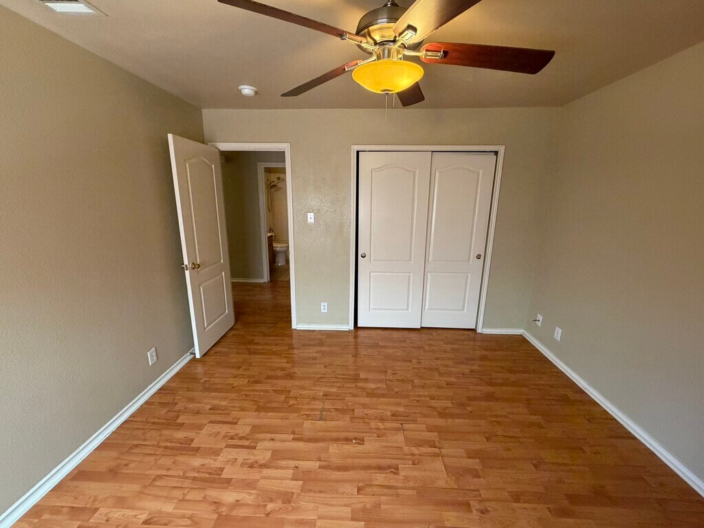 Single Story, 3 bedrooms, 2 baths in 1824 sq.ft. 2 car garage. Open floor plan- combines living & dining- plus eat-in kitchen. Granite counters- stainless steel appliances to include refrigerator. Kitchen includes large pantry, built in desk & bay window. Ensuite Primary bedroom. Primary features separate shower & garden tub- double vanities & large closet. Covered patio in backyard w/privacy fence. Neighborhood park & playground.