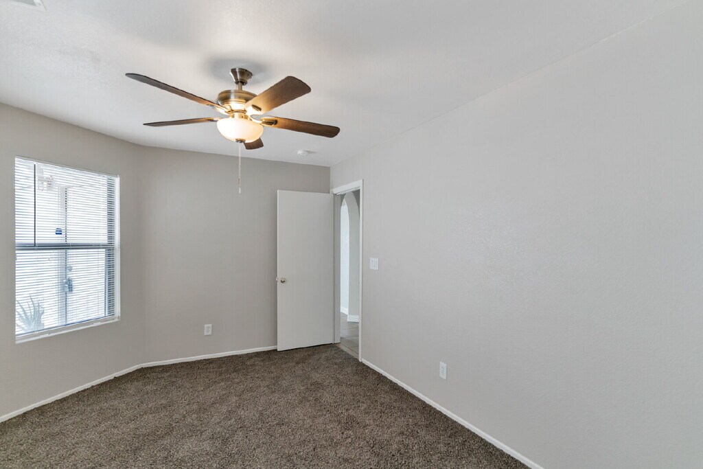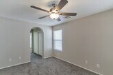 Charming single-story 3-bedroom, 2-bath home featuring ceiling fans and window blinds throughout. The bedrooms offer plush carpeting, while tile flooring enhances the main living areas and bathrooms. Both the front and backyard showcase low-maintenance landscaping, with pavers and artificial turf in the backyard.