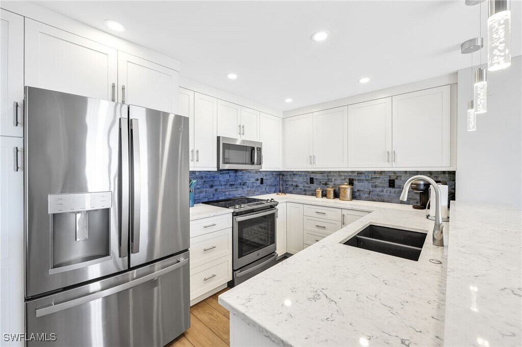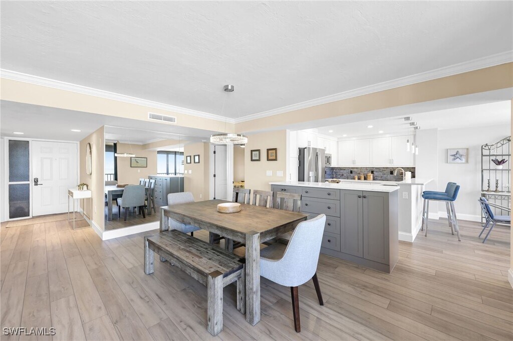 RARELY AVAILABLE… GORGEOUS,TURNKEY,FULLY RENOVATED BEACHFRONT 2 bedroom,2 1/2-bath condo for lease at CASA GRANDE on Vanderbilt Beach. This condo has been fabulously redesigned to accommodate up to six people. This meticulously maintained home showcases incredible features including: Remote sun shade window coverings,plantation shutters,crown molding,beautiful wood flooring,custom built cabinets,mounted TVs,high baseboards,electric hurricane shutters,and direct beach views. The open-concept living area flows to a large tiled screened lanai and balcony overlooking the Beach and Gulf. The primary suite features a king bed,and the guest room offers a queen size. There’s even a pullout sofa for extra guests. Spa-style baths boast tiled showers to the ceiling,dual sinks,and high-profile vanities with quartz tops,and an extra half bath for your guests. The standout kitchen includes stainless steel appliances,quartz countertops,a separate island,soft-close drawers and doors,a deep stainless sink,gorgeous blue backsplash,pendant lighting,and abundant storage. Convenience continues with a high-end washer and dryer set and a laundry tub,assigned parking,and plenty of guest parking across the street. Community amenities include an elevator,private beach access,a large heated pool,and storage area. Only minutes away from world-class dining,shops,and entertainment.