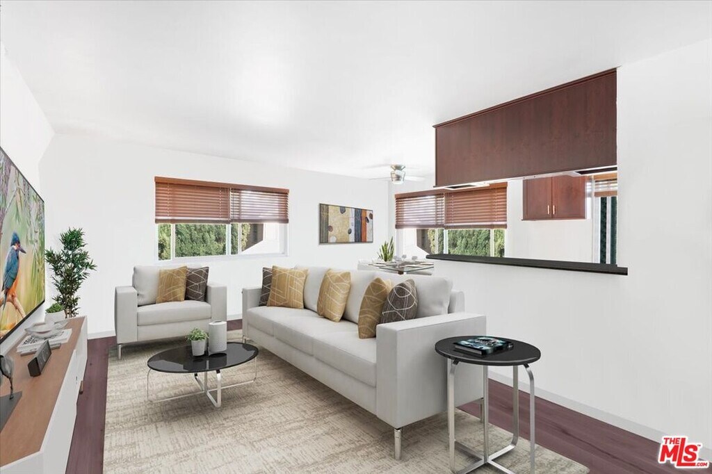 Beautiful top-floor corner 1-bedroom, 1-bath condo located on a quiet, private street in one of the best areas of West Hollywood. The remodeled kitchen features dark cabinetry, black granite countertops, and stainless steel appliances, opening seamlessly to the living room for an open, comfortable layout. The unit includes dark wood floors, brand-new carpet, new ceiling fans, and updated LED lighting throughout.Just one block from the Sunset Strip and Santa Monica Blvd, enjoy walkable access to world-class restaurants, cafes, and nightlife. Located in a pristine, secure complex with a heated pool and spa, BBQ/picnic area/ and a Club house, this home & community offers the perfect blend of serenity and vibrant West Hollywood living! MLS# 26658677