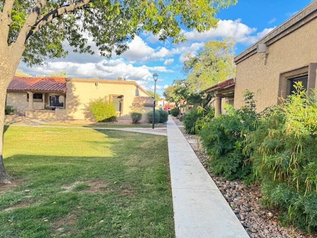 Beautifully updated 2-bedroom,2-bath single level patio home with brand-new flooring,new water heater,new refrigerator,and new oven. Both bedrooms offer private en-suite bathrooms. This rental has in-unit laundry,a cozy fireplace and outdoor patio. One covered parking spot and additional uncovered parking available. This well-maintained community includes a sparkling pool,lush landscaping,and convenient access to shopping,dining,parks,and major freeways (loop 101 and 202). Tenant pays electric and water. Sewer and trash covered by landlord. Small dogs allowed with deposit and pet rent of $50/month/pet. No smoking or vaping. Minimum 12-month lease preferred. Application includes $47 background check paid by tenant. Security deposit $1550. Refundable cleaning deposit $200. Send inquiries to listing agent.