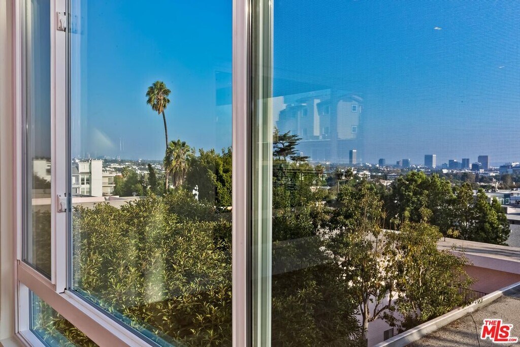 This top-level end unit showcases sweeping views of the iconic Pacific Design Center and the glittering city skyline from nearly every room. Perched on a hillside between fashionable Santa Monica Boulevard and the famed Sunset Strip, this home captures the best of vibrant city living and serene retreat. Recently updated, the unit combines modern comfort and timeless style. The light-filled living room features expansive windows that frame the skyline like a work of art, complemented by engineered maple hardwood floors that add warmth and elegance throughout. The black-tiled open concept kitchen is both stylish and functional, complete with newer stainless steel appliances. The primary suite offers a peaceful escape, illuminated by natural light. Spacious closets add generous storage while enhancing the airy feel. Both bathrooms have been thoughtfully upgraded with modern, sophisticated finishes. On the ground floor, a grand lobby opens to a lush resort-style courtyard featuring a large heated pool, spa, and shaded dog walk area, offering an ideal blend of luxury, comfort, and quintessential California lifestyle. MLS# 25601257
