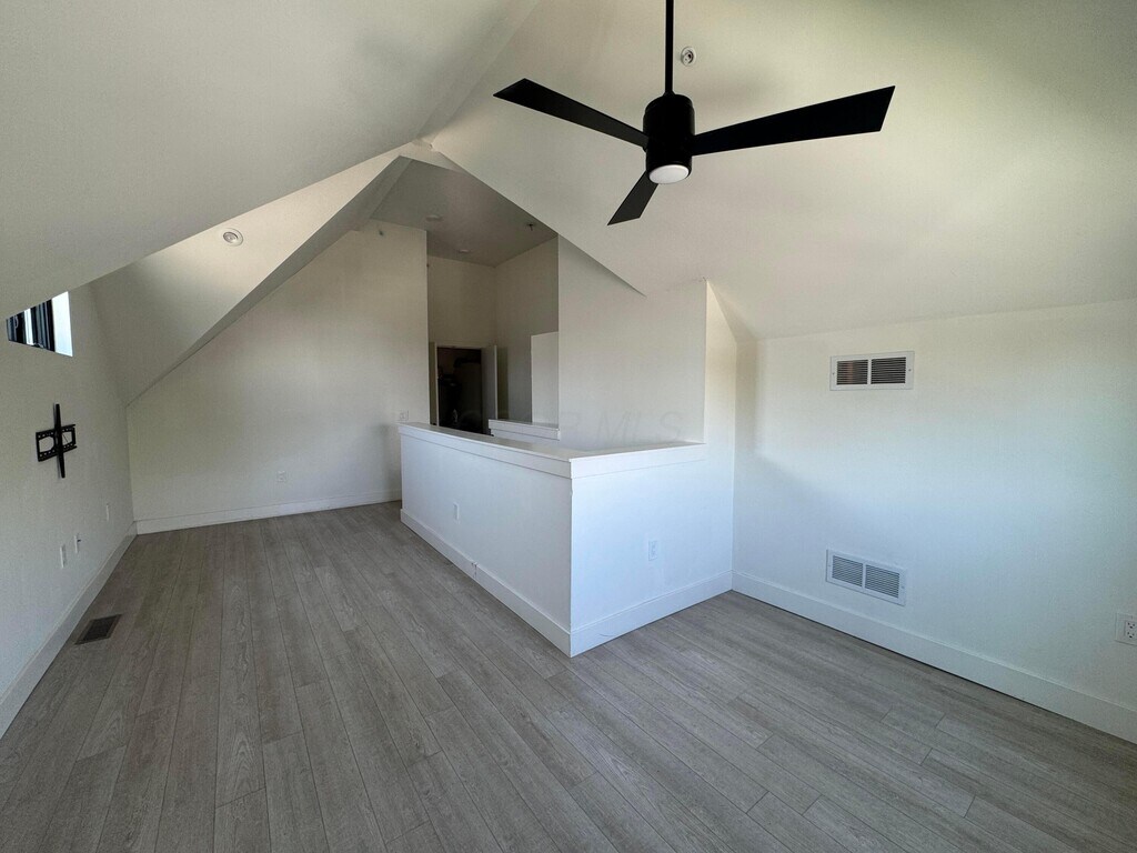 Modern 2-Bed Loft-Style Unit in Columbus Ohio? Looking for a fresh,modern place to call home in Columbus? Your search stops here! If you want an updated space with a cool city loft vibe,this two-story unit at 973 E Broad Street has exactly what you need. Unit 4 is located in building 985 E Broad St. Imagine waking up to bright sunlight pouring through the large,black-framed windows. Picture yourself making your morning coffee in a sleek,bright kitchen with cool,exposed pipes on the ceiling above you. It feels calm,clean,and completely modern. It is the perfect quiet spot to relax after a busy day. This second-floor home features two bedrooms and one full bathroom,with the primary bedroom located upstairs for extra privacy. The kitchen is beautifully finished with clean white and grey cabinets,solid surface countertops,and included stainless steel appliances like a fridge,built-in oven,dishwasher,and microwave. You will love the loft-style exposed ductwork and beautiful modern wood-look floors that flow throughout the space. For your comfort,the home includes central air conditioning and ceiling fans. Plus,having laundry right inside your unit makes everyday life so much easier! Located in the heart of Columbus,OH 43222,you will have great access to city commutes and local neighborhoods.