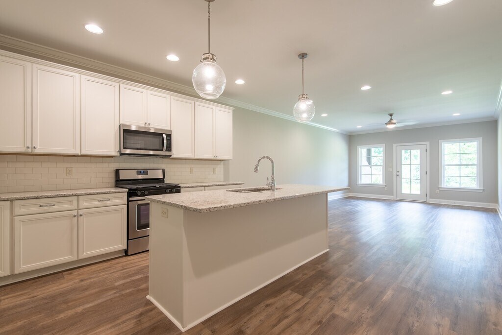 Spacious new construction luxury home. Open floor plan, Large kitchen island with granite counters, stainless steel appliances. Master bedroom with ensuite on main level. Large bedrooms upstairs with plenty of closet space. Walk-in Attic storage. Single car garage and access to clubhouse and pool.
