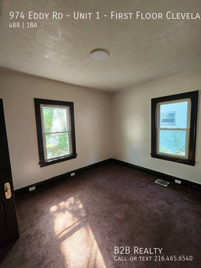 - Additional Property Details- Welcome to your new sanctuary! Situated in a vibrant neighborhood, this charming 4-bedroom unit at 974 Eddy Rd - Unit 2 offers the perfect comfort and convenience. Designed for those seeking a peaceful retreat without sacrificing access to the best the city has to offer, this cozy apartment provides an exceptional living experience. Property Type: • Multi-Family Dwelling: This property is part of a multi-family property, providing you with a community-oriented living environment with multiple units within the building. Interior Features: • Modern Kitchen: The kitchen is well-appointed with essential cabinetry and workspace, making meal preparation a breeze. Enjoy the convenience of modern fixtures and ample storage space. • Comfortable Bedroom: The bedroom offers a peaceful oasis, perfect for unwinding after a busy day. Its tranquil setting ensures a good night's sleep. • Updated Bathroom: The bathroom is clean and functional, with modern fixtures that cater to your daily needs. • Landscaped Surroundings: The apartment is nestled within a beautifully landscaped area, offering a green and serene environment. The lush greenery around the property adds to the tranquil atmosphere, providing a refreshing retreat from the city's hustle and bustle. • Safe and Secure: The property is situated in a safe neighborhood, providing peace of mind for you and your loved ones. The well-lit exterior and secure entryways further enhance the security of your new home. Location Highlights: • Convenient Access: Situated in a desirable neighborhood, this property provides easy access to local shops, dining, and entertainment options. Whether you’re a busy professional or a student, you’ll appreciate the convenience of having amenities close by. • Vibrant Community: The surrounding area is known for its friendly community atmosphere and offers plenty of opportunities to explore and engage with your neighbors. Additional Information: • Screening: We charge a $25 fee per person over the age of 18 for background checks. Our comprehensive screening process includes credit, background, and eviction checks as well as verification of income, job history, and landlord references. We strive to approve tenants who may not initially think they qualify. Resident Benefit Package: Our mandatory Resident Benefit Package is designed to make your life easier, rewarding, and stress-free. Here’s what you get: Pest Share Protection: Covers control for bed bugs, fleas, mites, ticks, & weevils. Credit Building: Boost your credit score with every rent payment—we report it for you! Resident Rewards: Earn cash and discounts worth up to $4,500 annually. No ACH Fees: Enjoy waived $2.49 ACH fees on all online payments. 24/7 Maintenance Line: Round-the-clock access to ensure peace of mind. NSF Fee Waiver: Get one non-sufficient funds (NSF) fee waived per tenancy. Move-in Concierge: One call to set up utilities, cable, and internet. SmartLock Access & FREE Lockbox: Convenient move-in with advanced security. Online Rent Payments & Portal Access: Easy access to your payments and account overview. Vetted Vendor Program: Only insured vendors will service your unit for extra reliability. Take advantage of this comprehensive package for just $49.50/month, designed to enhance your living experience while saving you time and money! • Neighborhood Insight: To get a true sense of the area, we recommend visiting the property at different times of the day. This will give you a realistic feel for the neighborhood’s ambiance and what to expect. • Maintenance: B2B Realty ensures that all properties are safe and well-maintained. While tenants are not permitted to make changes or repairs to the property, our dedicated maintenance team is always available to address any issues. Availability: • Self paying Accepted: We are pleased to accept a Self paying applicant for this property. • Section 8 Accepted: We are pleased to accept Section 8 vouchers for this property. Contact Us: Don’t miss this incredible opportunity to avail 974 Eddy Rd - Unit 2 as your new home. Contact B2B Realty today to schedule a viewing and discover what makes this property so special. Our friendly team is ready to assist you with any questions you may have and help you through the application process. B2B Realty Phone: Call or text to schedule a tour today! - Unit 1 - First Floor Cleveland, OH - 974 Eddy Rd- $1,2004 Beds, 1 Bath, 1335 sq ftAvailable Now- Availability Details- Price - Availability Date - Unit - Sq Ft - $1,200 - Available Now - Unit 1 - First Floor Cleveland, OH - 974 Eddy Rd - 1335 sq ft - Model Rent and Fees- Model Price- $1,200