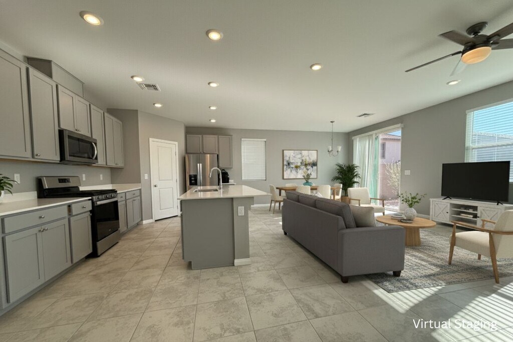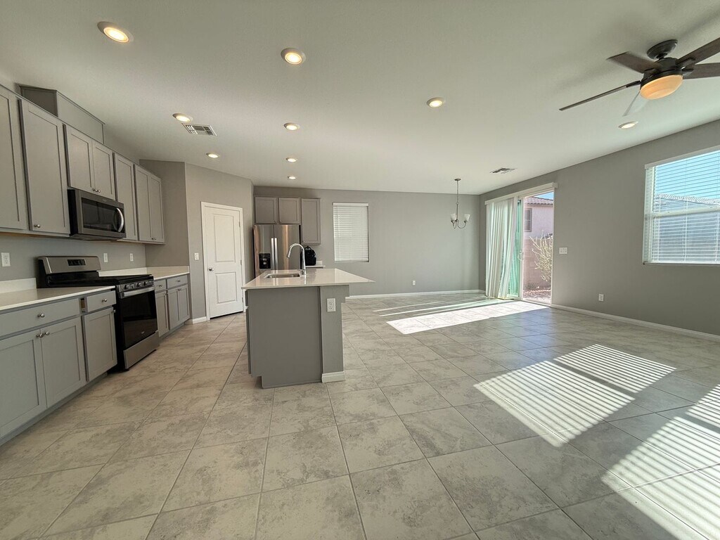 Beautiful home in great location, gated community and near the community park. 5 bedrooms/3 baths + loft including one bedroom and bath downstairs and one super big guest bedroom; open floor plan, the entryway opens up to a spacious living space overlooking the gourmet kitchen, the kitchen includes granite countertops, a kitchen island and a pantry; extra large master suite features a huge walk-in closet, a beautiful bathroom with dual sinks and a large walk-in shower with seating; tile downstairs and carpet upstairs. huge backyard with beautiful, low maintenance desert landscaping. The rent includes $48 sewer/trash. Will consider small pets. Disclaimer: --- By submitting this form, you authorize the property manager and AIgentProp to contact you via SMS, phone, or email about rental-related matters. Listing ID: 923cb00e-6aeb-4c90-ba26-23cd2668c169