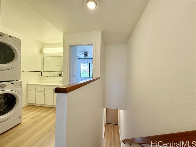 This beautifully updated 2-bedroom, 1.5-bath split-level townhome is a must-see! Recently renovated with a refreshed kitchen, new flooring, and fresh interior paint, this home offers both comfort and modern appeal. Residents enjoy access to community amenities including a swimming pool, recreation room, jacuzzi, and BBQ area. The unit features an in-unit washer and dryer, one assigned parking stall, and ample guest parking. Conveniently and centrally located near Pearlridge Center, Pali Momi Medical Center, Joint Base Pearl Harbor-Hickam, rail stations, freeway access, dining, and grocery stores.