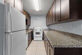 Sunlit and welcoming corner 2BR/1BA with ground-floor entry and a private fenced backyard. This residence features high ceilings, tile flooring throughout, and large windows in every room, including the kitchen and bathroom, for beautiful natural light. The spacious living area opens directly to the backyard, creating an easy indoor–outdoor flow, with a second access point from the primary bedroom. The primary suite includes a walk-in closet, while additional closets throughout the condo provide generous storage. The kitchen offers wood cabinetry, granite countertops, abundant storage, a dishwasher, and an electric range. The modern bathroom includes a bathtub/shower combo, a window for natural ventilation, and updated tile finishes that complement the home’s clean aesthetic. Additional highlights include central A/C and convenient street access from the private yard, a unique feature for condo living. Located in the Olas Azules community with on-site laundry facilities and easy access to local shops, dining, and major roadways.