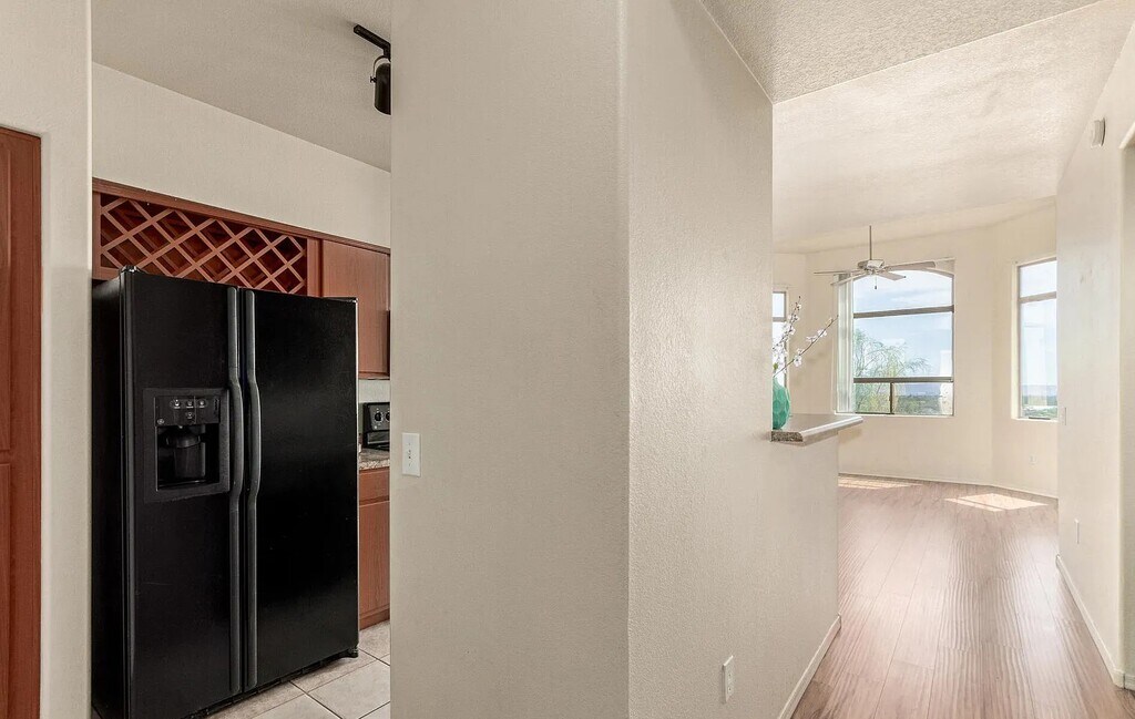 Views, Views, Views. in the heart of the Central Corridor at the top of Central. Unfurnished 2 bedroom, 2 bath unit in security building with 2 dedicated parking spots. The unit faces East, which will help w/utilities. The SPACIOUS kitchen has a breakfast bar, built-in microwave, refrigerator, plenty of cabinet space & built in wine rack. Ceiling fans & new carpet throughout. MARBLE FLOORING in the kitchen and bathrooms. Large master bedroom has on-suite & custom paint, crown molding, custom drapery, 2 LARGE master closets & FULL MASTER BATHRM w/frameless shower. Inside Laundry Room with a Full Size washer & dryer & outside storage. This is a quiet gated community with a fitness center, heated pool & spa, clubhouse, walking trails, BBQ areas, elevator and gorgeous mountain views. Move-in Ready.