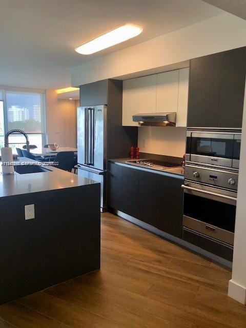 Waterfront view. Luxury boutique building in one of the most safety area in Miami Dade. The unit has tile floor in all unit, quartz countertop, Italian cabinets with Viking appliances. Great balcony to enjoy a beautiful view. The building features a bay front desk, fitness center, sauna, a waterfront barbecues, two pools, kayaks and paddle boats available, super well located in the Islands, steps away from Bal Harbor shops, restaurants, cafes and beach. Great school A+ in the Island. MLS # A11929685