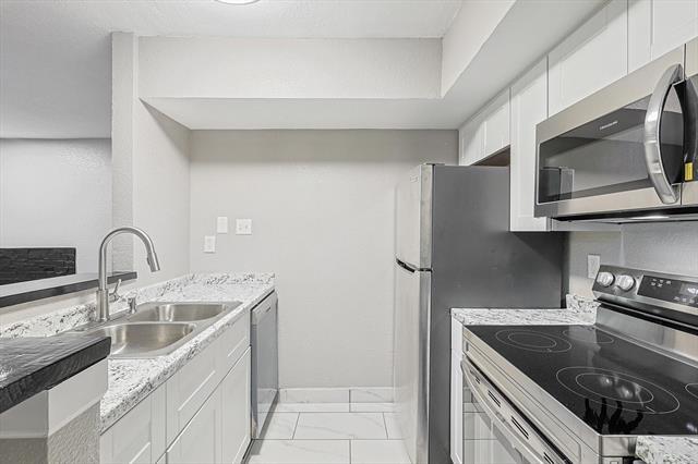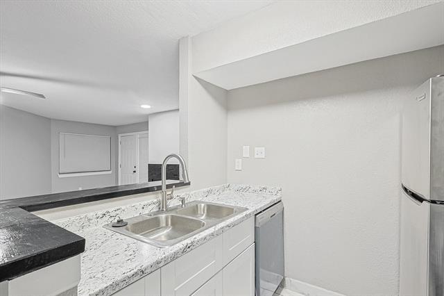 One-of-a-kind Condo located in Richland Trace Condos, minutes from shopping centers & significant Dallas highways & Richland College. Fully Remodeled with fresh paint throughout the condo, including walls & ceiling, new carpet at staircase & bedroom upstairs. This Gorgeous condo is fully equipped with a stacked washer & dryer. The kitchen was renovated entirely with appliances & resurfaced countertops, an attached coffee bar adjacent to the living room with open space & access to a balcony with an additional storage room. Open inviting layout from living room to kitchen. Very spacious and cozy. Outstanding condo & will make you feel