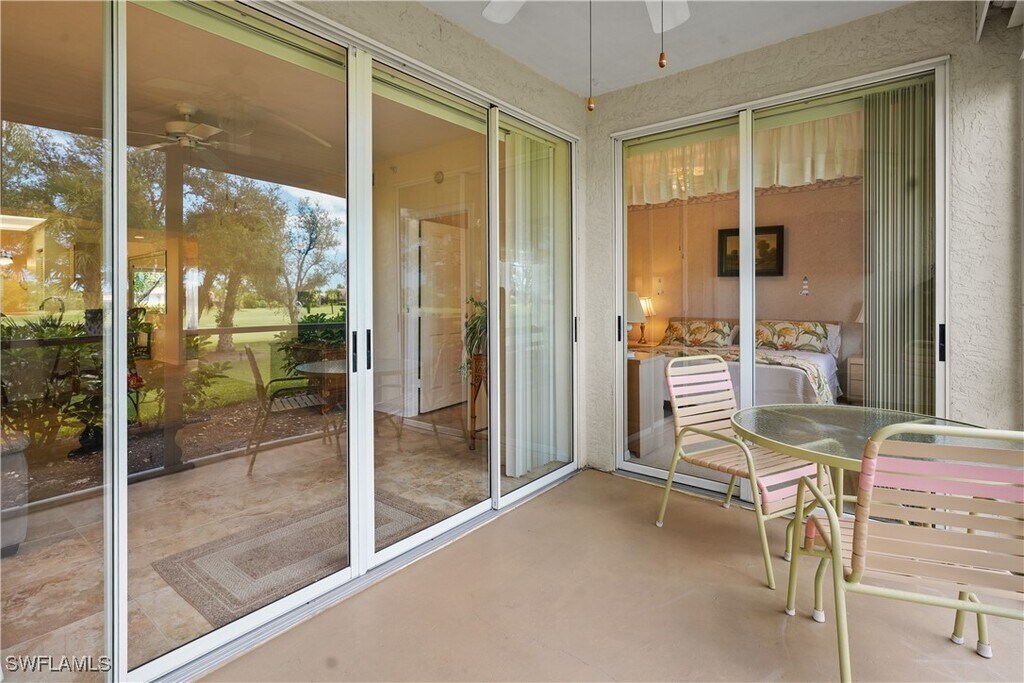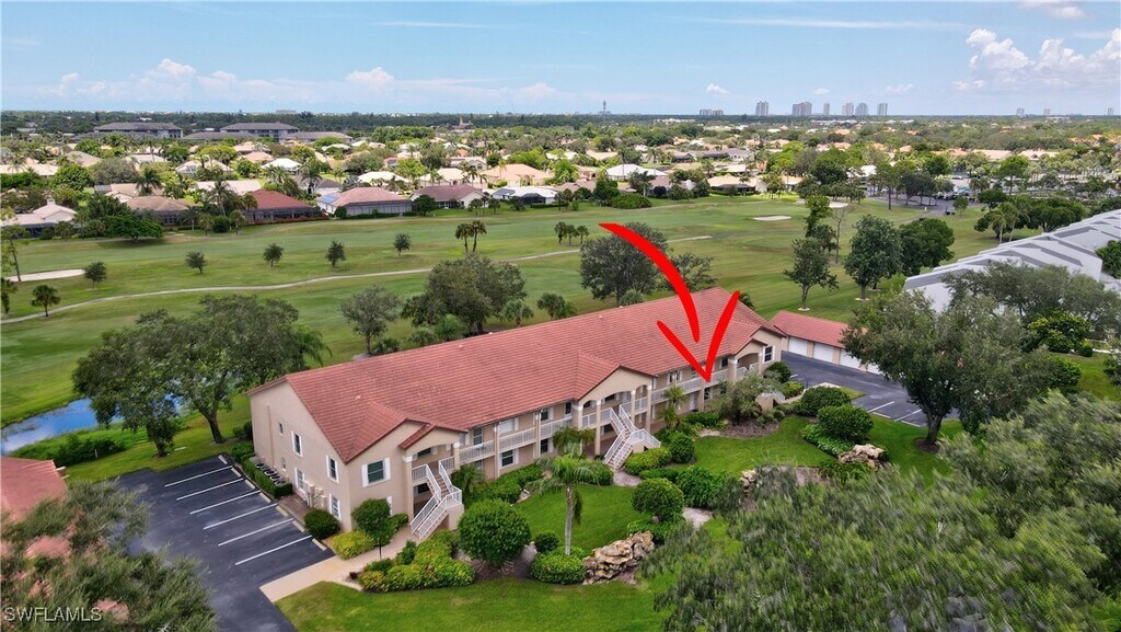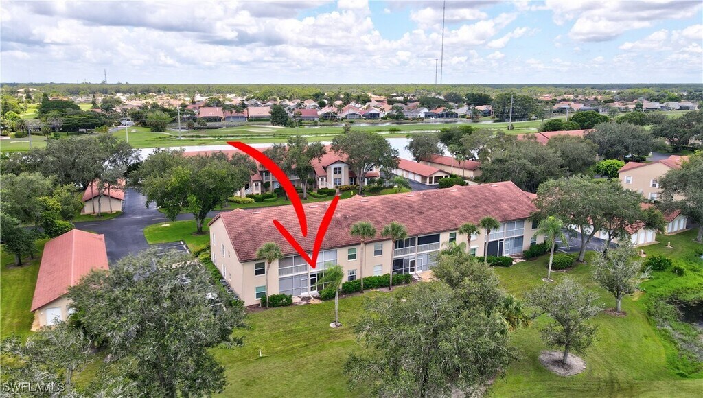 Light and Bright 2BR/2BA ANNUAL Rental with Garage and Extra Storage in Spanish Wells Golf and Country Club Embrace the Spanish Wells lifestyle in this recently painted and refreshed annual rental. Enjoy year-round living in this beautiful second floor condo with high ceilings and an abundance of natural light . Stunning panoramic views of green space and the golf course are visible from the primary bedroom and the lanai. The sunsets are amazing too. The bedrooms are split and offer privacy. The kitchen features stainless steel appliances. A laundry room with a washer and dryer is in residence making it very convenient. The detached garage with combined storage space is just a few steps from your front door. There is a reserved parking space for you and guest parking is marked. You are just a short walk to the beautiful community pool. Spanish Wells is conveniently located to shopping,dining,and entertaining. The white sandy beaches at Barefoot Beach are less than 5 min away. Schedule your showing today to make this condo your ideal annual retreat!