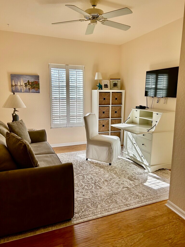 Beautifully furnished 2 bedroom, 2 bath plus den end unit condo. Den includes a queen sleeper sofa. Condo is located in Spanish Wells Golf Community. Enjoy the golf course views while relaxing on the tranquil lanai. Master bedroom includes a king bed while the second bedroom includes a queen. Walk-in showers in both bathrooms and an updated closet in master. Garage can be used that also includes 1 parking spot. Bikes, beach chairs and beach towels are all included. Only 3 miles to the beach and close to shopping and restaurants. Condo is a nonsmoking unit renter must abide by owner request. Cable & internet are included in rent, electric must be paid by renter. Call to view condo Rent 2,300 Condo will be available April 1, 2026-December 30 , 2026