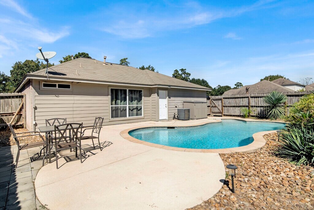 Single story 3 bedroom,2 bath home with a POOL across from Willis High School. Beautiful formal entry awaits your decor when you enter the front door. The living room is spacious providing plenty of room for your furnishings. Appreciate the kitchen details- full size refrigerator,gas stove/oven,dishwasher & microwave with an island for additional counter space to prepare meals & 2 pantry spaces. Primary bedroom has high ceilings & large windows with black out curtains included. The primary bathroom has two sinks & large soaking tub with access to the huge walk in closet. Secondary bedrooms located on the west side of the house both w/ceiling fans & carpeted flooring. Secondary bathroom is located near living room & secondary bedrooms. Laundry area is located near dining room including full size washer and dryer. Two car garage has storage shelves and containers included. Cool off during the warm days by swimming in the pool,beautifully landscaped w/patio set included. MLS# 65743125