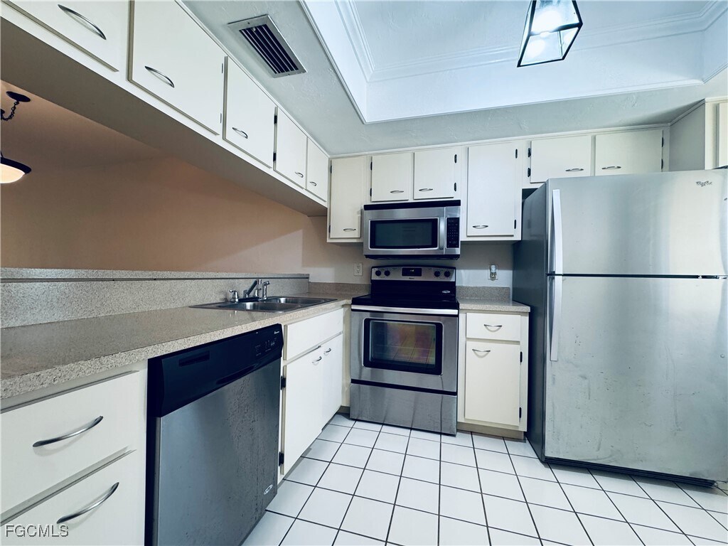 This 2-bedroom,2-bathroom condominium offers 1,020 square feet of comfortable living space in the peaceful Citadel Condominiums community. The home features a practical layout with a spacious living and dining area,freshly painted walls,and new plank flooring throughout the main living areas and bedrooms. The kitchen is fully equipped with stainless steel appliances,including a refrigerator,range,microwave,and dishwasher. Light cabinetry and ample counter space make it easy to prepare and enjoy meals at home. Both bedrooms are well-sized,each with its own walk-in closet and ceiling fan for added comfort. The bathrooms are nicely maintained,featuring updated lighting,tile floors,and a mix of walk-in shower and tub options. Enjoy your morning coffee or unwind in the evenings from the screened lanai,which opens to a landscaped area surrounded by palm trees and tropical greenery. A washer and dryer are included in a dedicated laundry room for added convenience. Citadel Condominiums offers residents access to a community swimming pool with a sundeck and shaded sitting area. Its Bonita Springs location places you just minutes from nearby shops,restaurants,and everyday conveniences,with easy access to U.S. 41 and I-75. Southwest Florida’s beautiful beaches are a short drive away,making this an ideal spot to enjoy all that the area has to offer.