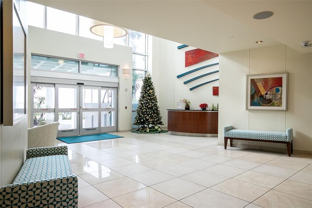 Annual rental available at this spectacular bayfront property...where downtown Sarasota meets the bay..this first floor unit has 10 ft ceilings and porcelain tile floors thru out. Tenants pay only the electric bill. No need to use an elevator to get to this condo. Brand new hurricane sliders were just installed giving you a wall to wall 10 ft high view. New blinds were installed. The condo was just painted. Located on a gated 9 acre peninsula,it is direct waterfront. No one will ever build in front of it and block your views of the bay & sunsets. The open floor plan extends from the kitchen to the large lanai with floor to ceiling sliders; this unit feels much larger than its sq footage and is laid out perfect for entertaining. The kitchen has plenty of storage,new SS appliances and a stackable full size washer/dryer. The split bedroom floor plan offers you maximum privacy. This unit has tons of storage. The primary ensuite has a walk in closet and bath with shower/tub and dual sinks. The large guest bedroom has a good size closet and is directly adjacent to the bath. The guest bath has dual sinks and tub/shower. At Condo on the Bay you can have it all....enjoy the conveniences of downtown living and the perks of living waterfront. Walk out your front door to jump on your boat or kayak,fish off the dock or lounge at one of our two resort style heated pools. Take a walk or bike to downtown to enjoy our many restaurants,theatres,art galleries,music,festivals,farmers market...Next door is the "Bay Park Sarasota" a 53 acre world class park with walking paths,playground,snack bar,music events and a performing arts center.. Behind the building across the canal is the Ritz Carlton/Hyatt yacht basin which is undergoing a transformation into a shopping/entertaining area. 24 hour security is provided and a concierge is on duty everyday from 8-6. Looking to make friends? There are a variety of organized social activities in this friendly community,from yoga,water aerobics,walking groups,card clubs,get togethers on the sky decks for no reason,etc. Underground assigned parking for one vehicle and lots of open parking on top deck. Condo on the Bay is located 4 miles from the airport,2 miles from Lido Beach and Armands Circle & 6 miles from Siesta beach. If you are looking to buy a home in Sarasota or waiting for your home to be built this is a great location to rent and explore the area. Or just rent long term and not worry about home ownership. Minimum lease 1 year. This condo can be a longer term rental if you are looking for a forever home MLS# A4674014