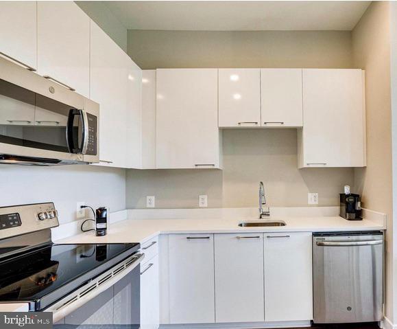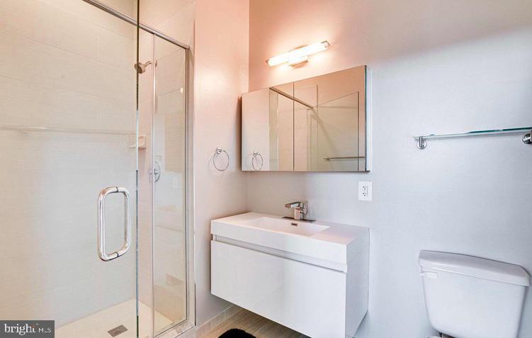 Welcome home! This newly built (2019) corner unit 2 BR/2 BA features an open layout with wood floors throughout. This floor plan is the largest in the building at over 1,000 SF. The spacious primary BR contains an en-suite full bath and custom designed walk-in closet. The second BR boasts large windows and natural light. Enjoy cooking in the open kitchen with sleek cabinets and counter tops and 2019 appliances. There is a washer/dryer in unit and 1 assigned garage parking space. The Trafalgar Flats community features an onsite 24-hour fitness center, entertainment/meeting room, and a large resident courtyard with fire pit and grills. A secured bike storage room and secured package room are on site as well. The location is convenient and close to restaurants along Columbia Pike, CVS, Harris Teeter, Four Mile Run Park, and the W&OD trail. A bus stop is right in front of the building and serviced by ART and Metro bus lines. The Ballston Metro is just 2 miles away. Up to 2 pets (dogs/cats) allowed.