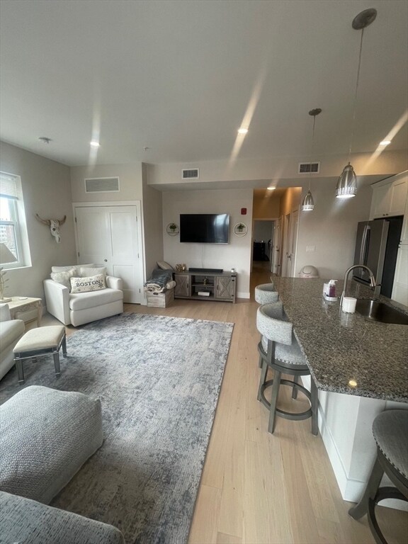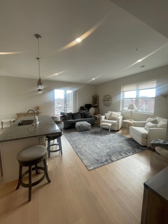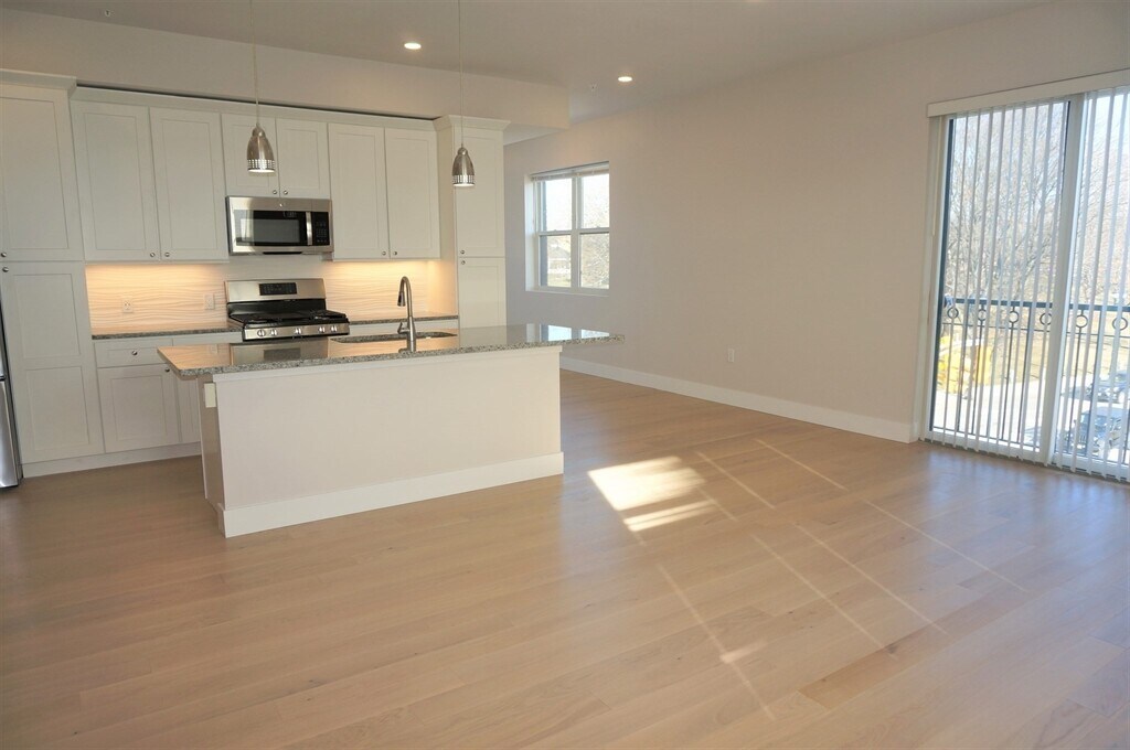 Rarerly Available! Luxury rental! Newer construction (2021) spacious apartment w/ South-West exposure. Located on 3rd floor in a modern, high quality 10-unit boutique brick building w/elevator. You are greeted by a wide hallway with nine-foot ceilings, massive open concept kitchen w/granite/SS appliances and large island with an overhang opens to dining and living area, sliders to Juliet balcony. Rarely available, it is one of the largest units with 2 beds/2baths. Main bedroom en-suite with two large closets. Second generous bedroom with full bath across the hallway. Laundry closet with stackable washer & dryer completes this 1370 +/- sqft unit. Tandem parking space assigned for this unit in the carport area can fit 2 cars. Located in central City location, across the street from Park, close to everything that Waltham has to offer: train to Boston at the doorsteps, close access to vibrant Moody St with Restaurant Row & Cafes, Embassy Cinema, shops, etc. Enjoy a stroll along the Charles River. Video tour available upon request. Move-in costs: 1st month, last month, one month Sec. Deposit. Available Sept.1st, 2025. Professionally managed with Property Management office on-site. Security system and cameras in place.