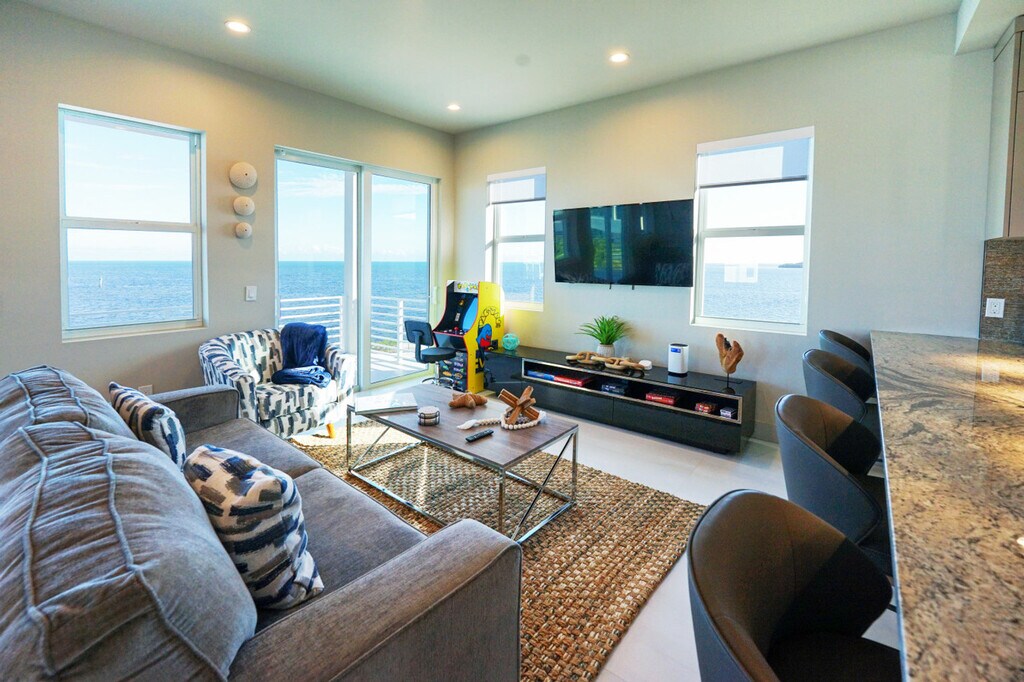 Welcome and feel at home in this newly constructed 3-bedroom, 3-bathroom modern home in Oceanview Paradise, set in a gated community with breathtaking views of the Atlantic Ocean. An in-home elevator makes it easy to navigate all three floors. Experience coastal luxury with spacious, light-filled interiors featuring elegant finishes and expansive ocean-facing windows. The living room’s arcade machine adds a playful touch while you relax with stunning sea views. Complimentary kayaks and paddleboards are available to explore calm coastal waters. A garage with an electric vehicle charger is available for parking. Pets are welcome with a flat fee of $20 per night for 1 pet and a flat fee of $30 per night for 2 pets. Key Largo’s vibrant dining and music scene is just a short walk away. Fresh seafood and live music are also within walking distance. For those craving adventure, jet ski rentals are just minutes away at the local marina. Check-in time is 4pm and check-out time is 11am. Monroe County ordinance quiet hours are from 10pm-8am. There is no smoking inside the house, and any violation will result in a $1000 fine. All waivers need to be signed and filled out prior to the use of the paddle boards and kayaks. The communal areas are under surveillance. The maximum number of guests is 8, but additional guests may be accommodated for a fee of $40 per night per guest. Starting November 11th, 2025 to November 25th, 2025 both the pool and spa areas will be getting worked on. This will be intermittent and can affect the use of these amenities throughout this timeframe. Please note that no refunds will be given as some days they will be available and other days they will not. Please read this and plan accordingly. [SI]