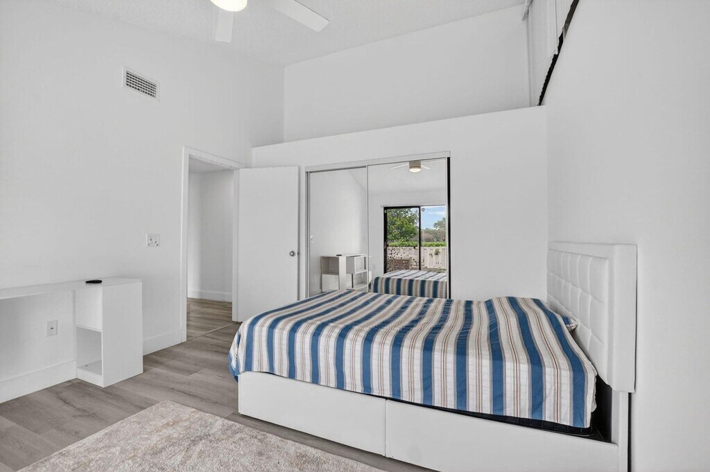 COURTESY OF TruNest Realty Group LLC This beautifully furnished 3-bedroom Courtyard Villa is situated in an all-ages, pet-friendly community in the heart of Boca Raton, just minutes from top-rated schools, houses of worship, shopping, and dining. Enjoy tranquil waterfront views, soaring volume ceilings, and an abundance of natural light that enhances the home’s bright and airy feel. The open-concept layout is ideal for both everyday living and entertaining, featuring an updated kitchen with white shaker cabinetry, a glass subway tile backsplash, and granite countertops. Laminate flooring flows throughout, and the home is offered fully furnished with a washer and dryer included, making it completely move-in ready. HOA approval required.