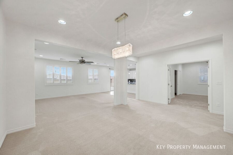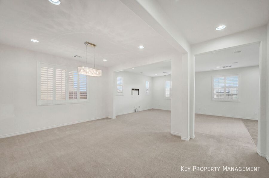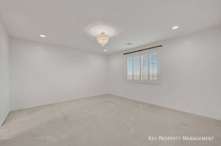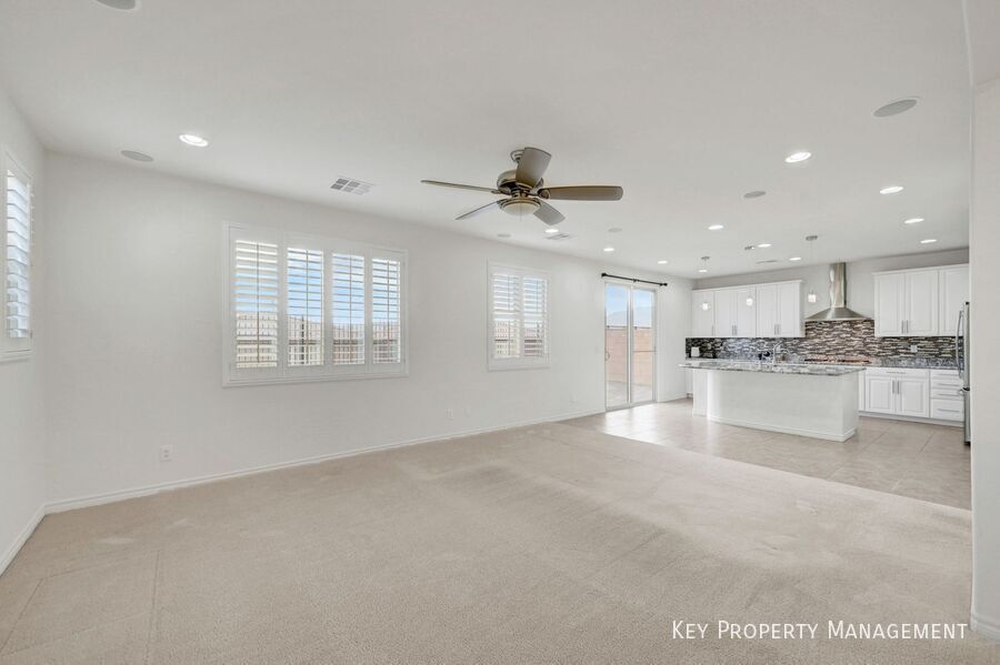 Welcome to this exceptional 2,900+ square foot, 4-bedroom, 2.5-bath, Large Loft, and Den/Office/Possible 5th Bedroom. Residence ideally situated in the highly desirable Southwest area of Las Vegas. From the moment you arrive, you are greeted by a grand entryway featuring elegant architectural details, upgraded stair railings, and distinctive Santa Fe–style wall texturing that adds warmth and character throughout the home. The thoughtfully designed floor plan offers both style and functionality. The spacious kitchen serves as the heart of the home, complete with a large center island, ample cabinetry, a spacious walk-in pantry, and generous counter space, perfect for everyday living and entertaining. A downstairs den or home office with French glass doors provides a private and versatile space ideal for remote work, studying, or a quiet retreat. Upstairs, the bedrooms are well-proportioned, offering comfort and privacy, while the primary suite provides a relaxing escape at the end of the day. The home is further enhanced by its scenic views, allowing you to enjoy the beauty of the Las Vegas surroundings from the comfort of your own space. Convenience is key, with nearby elementary school within walking distance, making this home especially appealing for those seeking both accessibility and a neighborhood feel. Combining location, space, refined finishes, and thoughtful design, this property offers more than just a home, it delivers a lifestyle defined by comfort, convenience, and tranquility. Close Proximity To Schools Great View Pendent Lights