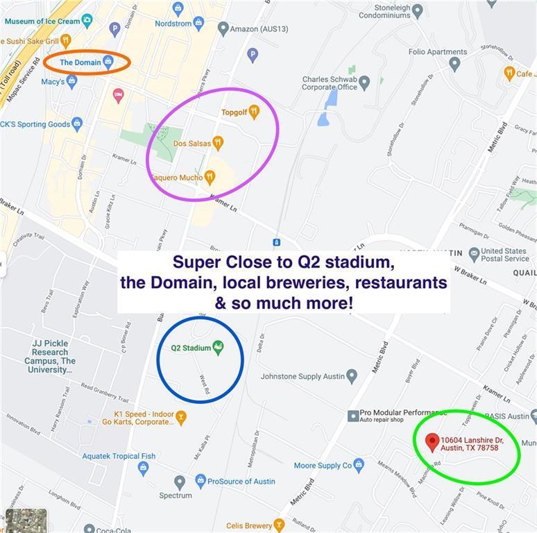 Está localizado en el barrio North Austin, 10604 Lanshire Dr en el código postal 78758 de Austin, TX.