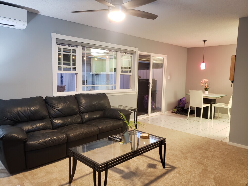 Vacante, PARCIALMENTE AMUEBLADOS recientemente renovadas de 2 habitaciones, 1 baño, casa adosada con garaje para 2 automóviles listo para disfrutar de los nuevos propietarios a disfrutar de este pintoresco vecindario tranquilo en Hawai Kai valle. Esta hermosa casa adosada de una planta ubicado en el extremo de una calle sin salida, apartamento en esquina con grandes árboles que ofrecen privacidad para mi área al aire libre. Cerca de parques, escuelas, supermercados, una enorme piscina y las áreas comunes son buenos para caminatas, caja de seguridad infantiles para correr y jugar! Renovaciones de la casa incluyen - Flamante alfombras en toda la casa - Mitsubishi dividir aire acondicionado en todas las habitaciones - Nueva pintura interior - Se realizarán tareas de renovación de baño. Ducha con azulejos y pisos con accesorios modernos - Flamante calentador de agua. Calentador de agua tiene un temporizador. - Instalación de la válvula de agua fuera de la casa - vertido de losa de cemento al aire libre - Instalación toldo fuera. Awning ha guirnaldas de luces al aire libre con un temporizador en que puedes ser programed para apagar y en determinadas horas. - Nueva ventana tonos - Nueva detector de humo - Puertas corredizas de ventanas (instalada por propietario anterior) Por favor, haz una cita para ver sentimos, no se admiten mascotas de $25 por persona de cargo por el fondo & verificación de crédito. Lo sentimos, no aceptamos la Sección 8 Vacante, recientemente renovadas de 2 habitaciones, 1 baño, casa adosada con garaje para 2 automóviles listo para disfrutar de los nuevos propietarios a disfrutar de este pintoresco vecindario tranquilo en Hawai Kai valle. Esta hermosa casa adosada de una planta ubicado en el extremo de una calle sin salida, apartamento en esquina con grandes árboles que ofrecen privacidad para mi área al aire libre. Cerca de parques, escuelas, supermercados, una enorme piscina y las áreas comunes son buenos para caminatas, caja de seguridad infantiles para correr y jugar! Renovaciones de la casa incluyen - Flamante alfombras en toda la casa - Mitsubishi dividir aire acondicionado en todas las habitaciones - Nueva pintura interior - Se realizarán tareas de renovación de baño. Ducha con azulejos y pisos con accesorios modernos - Flamante calentador de agua. Calentador de agua tiene un temporizador. - Instalación de la válvula de agua fuera de la casa - vertido de losa de cemento al aire libre - Instalación toldo fuera. Awning ha guirnaldas de luces al aire libre con un temporizador en que puedes ser programed para apagar y en determinadas horas. - Nueva ventana tonos - Nueva detector de humo - Puertas corredizas de ventanas (instalada por propietario anterior) Por favor, haz una cita para ver sentimos, no se admiten mascotas de $25 por persona de cargo por el fondo & verificación de crédito. Lo sentimos, no aceptamos la Sección 8