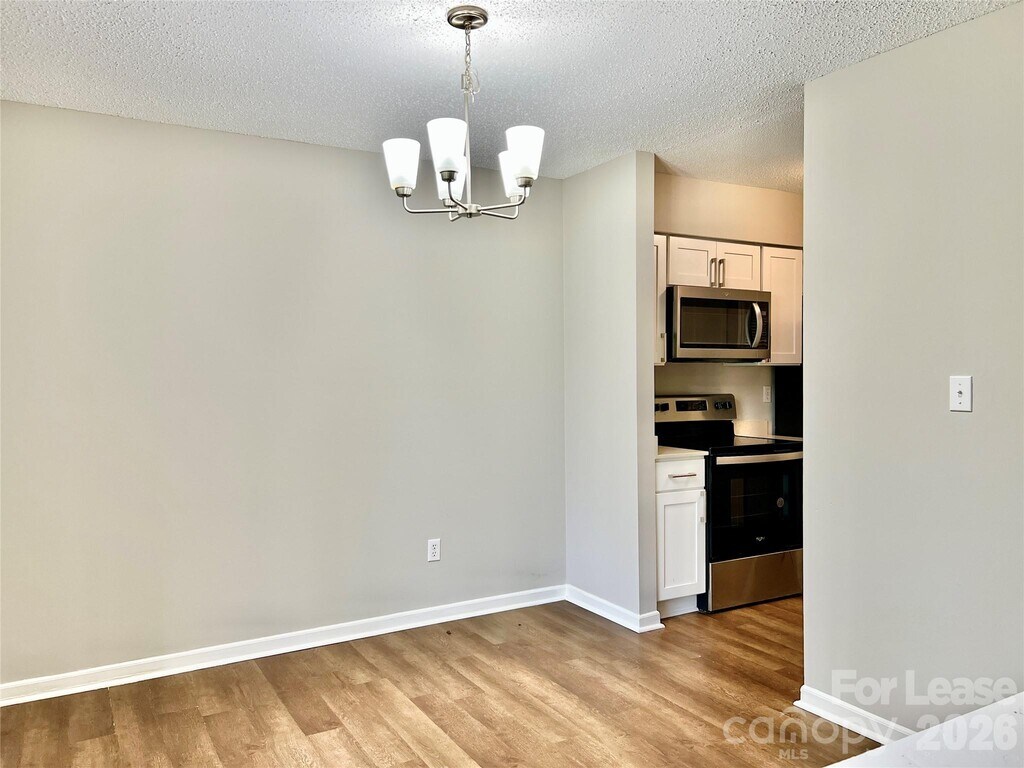 Clockwork Properties3 BEDROOM CONDO IN TERRIFIC LOCATION! Minutes from Ballantyne, Pineville, Matthews, South Park, I-485, shopping and dining. You'll love the updated kitchen with stainless steel appliances, granite countertops, and white shaker cabinets. The breakfast bar also serves as a pass through which gives the entire space an open feel. The living area includes a dining room and living room with cozy fireplace. The spacious Primary Suite includes a huge walk-in closet and an updated private bath. Low cost living as fridge, washer, dryer, lawn care, water, and sewer are all included! Don't forget to check out the back patio!