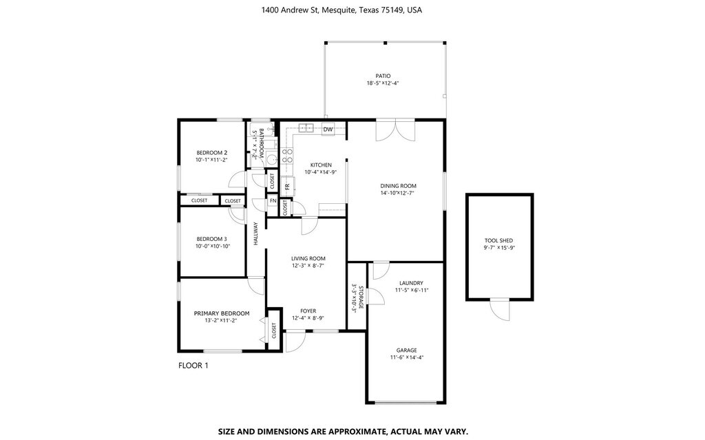 Está localizado en el barrio Downtown Mesquite, 1400 Andrew St en el código postal 75149 de Mesquite, TX.