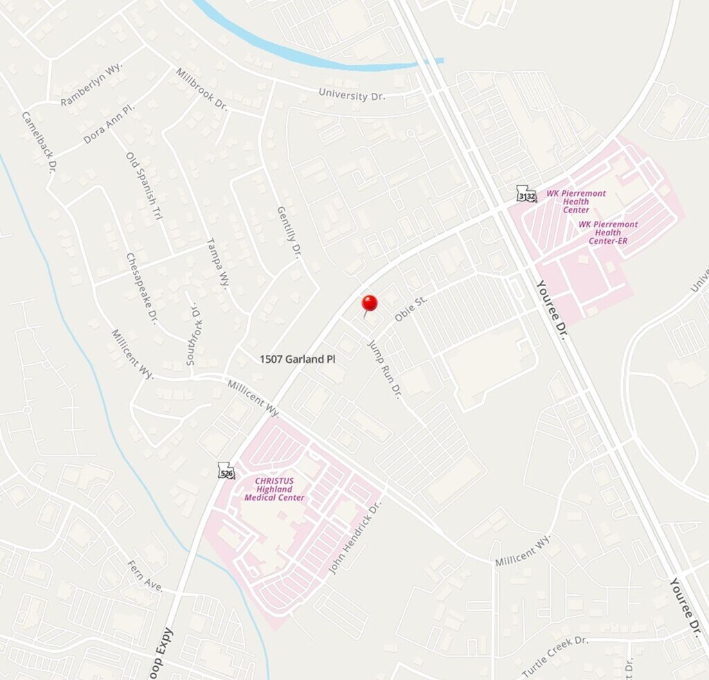 Está localizado en el barrio East Shreveport, 1507 Garland Pl en el código postal 71105 de Shreveport, LA.