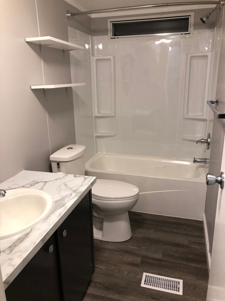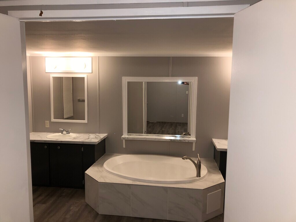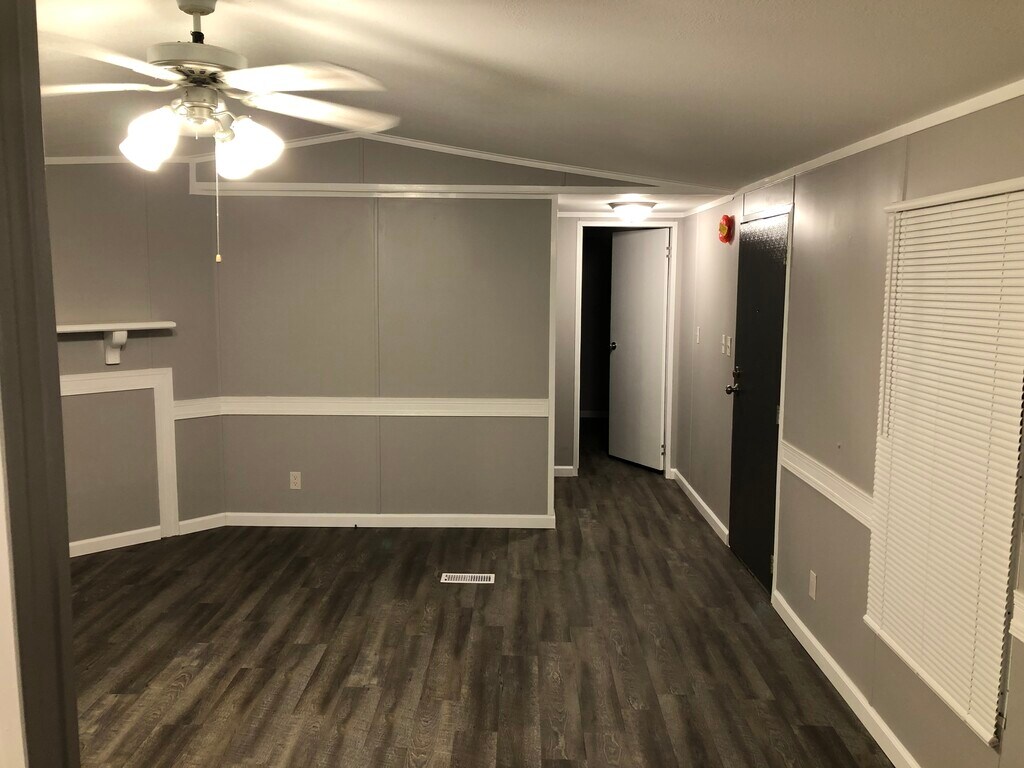 Completamente remodelado de 2 habitaciones, 2 baños teléfono móvil hogar privado ubicado en más de 1 acre liot. Un agradable terraza delantera cubierto. Garaje para 2 automóviles. Lavandería con conexiones para lavadora/secadora.
