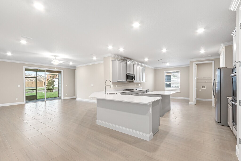 ¡Bienvenido a este hogar frente al lago en la comunidad de carritos de golf construidos por maestros de Silverleaf con un carrito de golf incluido! Cuenta con encimeras de cuarzo blanco y elegantes armarios grises, electrodomésticos de acero inoxidable, suelos de baldosas, una cocina para comer, un amplio estacionamiento frente al lago, un garaje para tres automóviles, una sala separada que se puede utilizar para un comedor, un salón de juegos o una oficina abierta. La disposición del cuarto dormitorio permite la suite privada ideal o la oficina privada. ¡Disfrute de pasear por los senderos para carritos de golf hasta los nuevos centros de amenidades para disfrutar de la piscina, los parques infantiles, los parques para perros y mucho más! La ubicación es ideal dentro del condado de St. Johns, a cinco minutos de un nuevo Costco, la interestatal y las escuelas del condado de St. Johns clasificadas como A. El propietario paga por el mantenimiento del césped