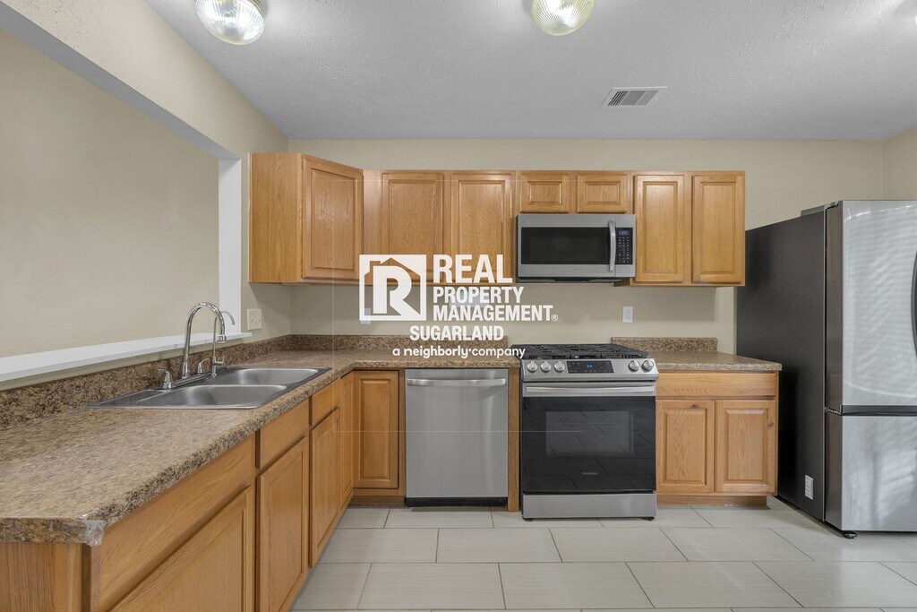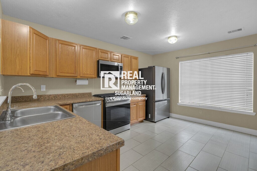 Está localizado en el barrio Bear Creek Copperfield, 19302 Wildoats Dr en el código postal 77449 de Katy, TX.