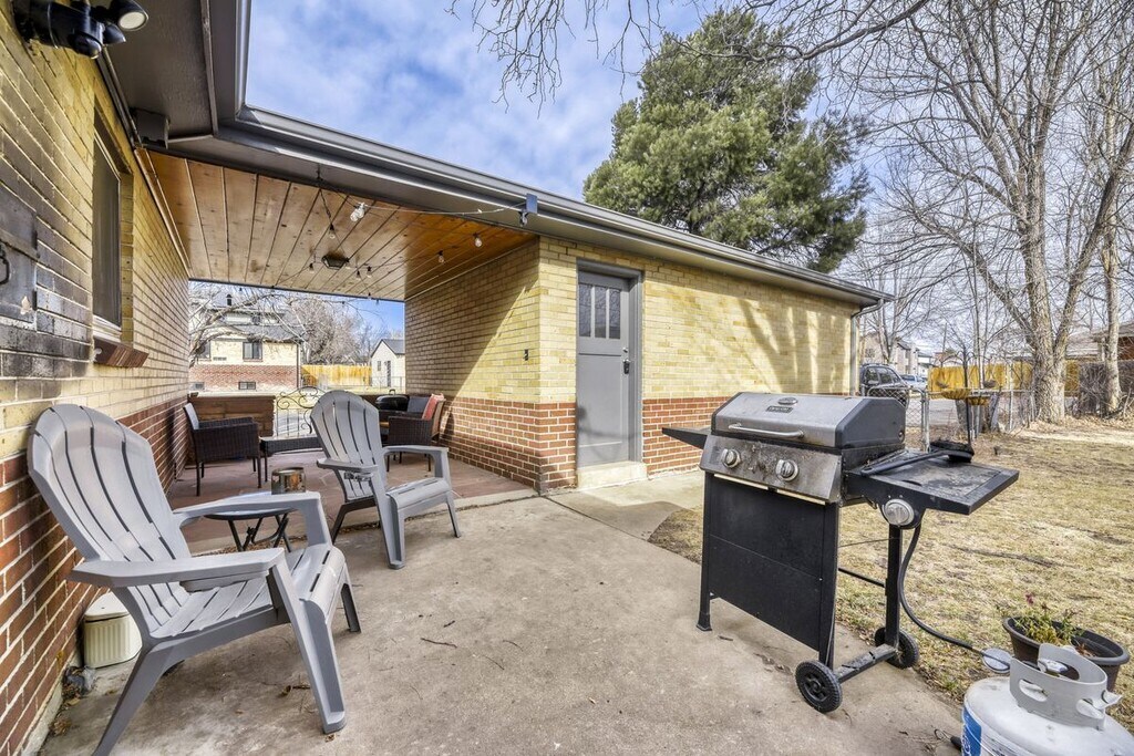 Beautiful Sloan's Lake neighborhood. This charming brick bungalow with 2 bedrooms, 1 bath is just 2 blocks to the lake and walking paths. Wood floors thru out and updated flooring in the bath, kitchen and laundry area. Hookups will accommodate a full-size washer and dryer. The sunny living area is highlighted with hardwood floors and large windows. The dining area is a great space for entertaining and pleasantly opens to the living area. The spacious kitchen has plenty of cabinets for the cook with lots of gadgets. Parking includes a detached 1 car garage with a private driveway for off street parking. The fenced backyard is surrounded by shade trees and is a great space for Fido. Rent includes lawn mowing. The covered patio is great for patio furniture and socializing. Great access to Downtown, Highlands, Edgewater Public Market. Take advantage of the stunning outdoor space at Sloan's Lake Park, just a short walk away, where you can enjoy leisurely strolls or invigorating outdoor activities. This delightful property offers an inviting atmosphere perfect for anyone seeking a comfortable and convenient lifestyle.