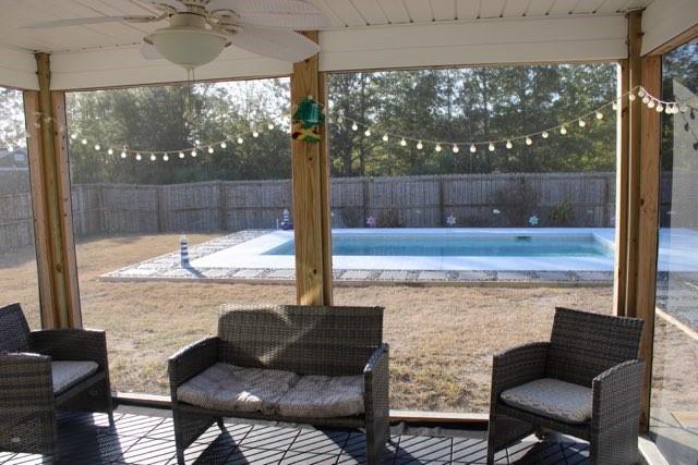Large two story home with a pool that offers 4 bedrooms and 2.5 bathrooms, with all bedrooms conveniently located upstairs. Downstairs includes a separate office along with a well-appointed kitchen complete with all appliances and a large pantry. The open layout makes the home ideal for both everyday living and entertaining. The primary suite features dual sinks and a large walk-in closet. Additional features include a 2-car garage, a screened porch, and a fenced backyard with an in-ground pool. A pool house provides for extra storage.