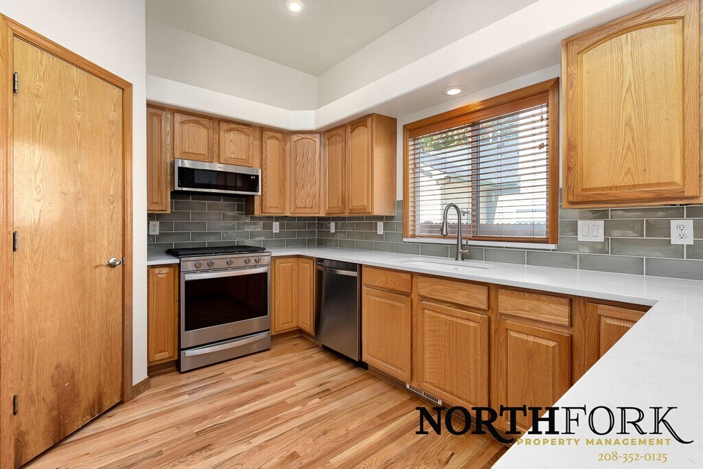 50 % de descuento en el primer mes de alquiler. Magnífica casa de cuatro camas y tres baños Great Sky Estates, llena de luz natural, ¡y le encantarán los hermosos pisos y los detalles en madera! Amplia con techos abovedados únicos en la gran habitación y la chimenea del piso al techo es impresionante. Los aspectos destacados incluyen una cocina recientemente renovada, oficina/mueble, un refugio principal en el nivel principal con acceso al patio, bañera de hidromasaje, ducha independiente, vestidor y tocadores dobles, y un dormitorio en la planta superior lo suficientemente grande como para ser una habitación adicional. El patio trasero tiene un maravilloso patio de entretenimiento y árboles maduros. Solicite en línea en