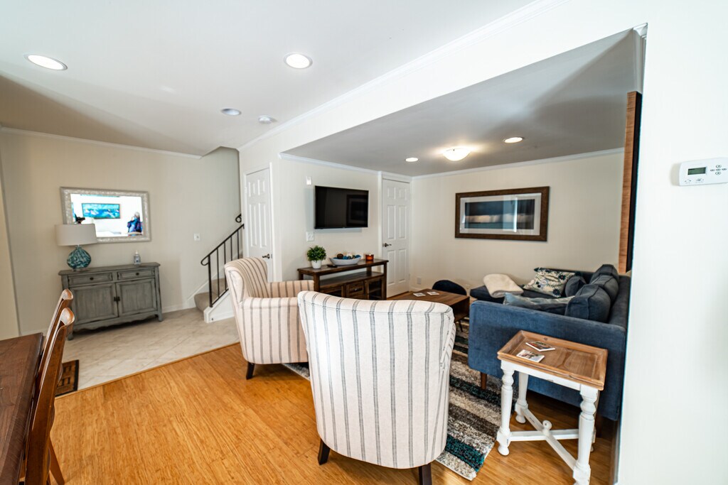 3 month minimum. This Fully Furnished and Fully Stocked Kitchen is a two story condo in a great location for walking, riding or driving to everything you need. 1st floor includes living room, dining area, sitting area, kitchen and 1/2 bath. 2nd floor includes 3 Bedrooms and 2 full baths. Community has a picnic area and dock as well as a pool for the summer months. Grocery, pharmacy, coffee shops, walking trails, and restaurants are all within 2 blocks. High speed wifi and parking included in price. 3 month minimum. This Fully Furnished and Fully Stocked Kitchen is a two story condo in a great location for walking, riding or driving to everything you need. 1st floor includes living room, dining area, sitting area, kitchen and 1/2 bath. 2nd floor includes 3 Bedrooms and 2 full baths. Community has a picnic area and dock as well as a pool for the summer months. Grocery, pharmacy, coffee shops, walking trails, and restaurants are all within 2 blocks. High speed wifi and parking included in price.