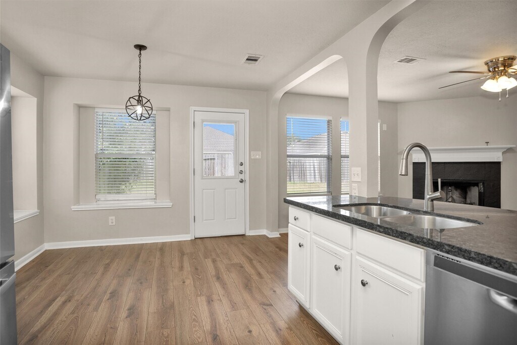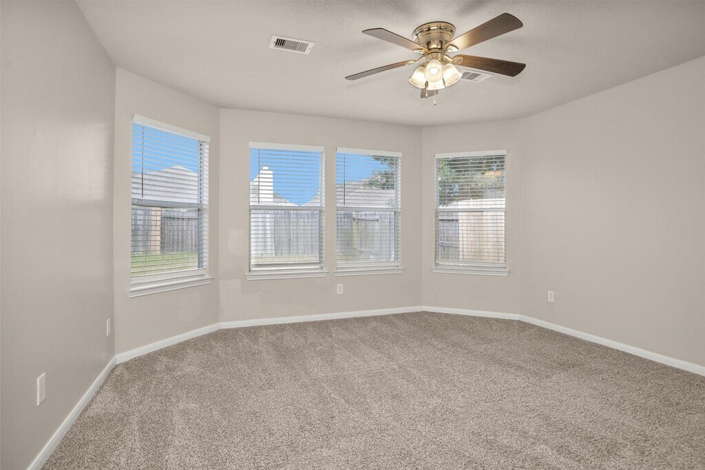Herma HayesImmaculate 1 story home available immediately. Open plan living area with fireplace and LVP floors. Central kitchen has granite counters, breakfast bar and clean, white cabinetry. Refrigerator included. Light and bright dining area with 2 walls of windows. Primary bedroom faces the back of the home with a lovely bay window. Tiled primary bathroom has double sinks, soaking garden tub and separate shower. Bedrooms all have ceiling fans and carpets - except for one that has LVP flooring. Utility closet in hallway opposite door to attached double garage. Compact garden in the front for easy maintenance but large enough at the back for children and pets to play. Back patio with shady tree. Walking distance to the park. Easy access to 249 and the Grand Parkway for commuting and close to shopping, restaurants, and other amenities.
