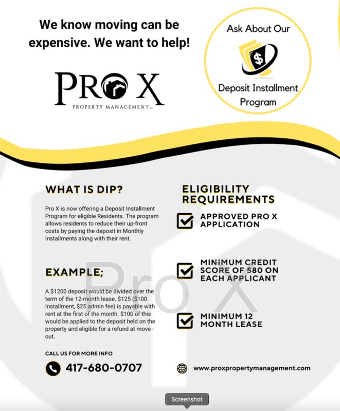 Bonita casa adosada de tres dormitorios y dos baños en Webb City, Missouri. Incluye cocina, lavavajillas y refrigerador. La unidad tiene conexiones de lavadora y secadora. Los servicios públicos son responsabilidad del inquilino. Se permiten mascotas con un cargo no reembolsable de $250 por mascota y un cargo mensual de $75 por la primera mascota, de $25 por mes por la segunda mascota, máximo de dos mascotas. No se aceptan vales de alojamiento. No dejes pasar esta oportunidad. ¡Llame hoy mismo para programar una presentación! O visite para programar en línea. Nuestra oficina requiere una solicitud de alquiler aprobada antes de que podamos arrendar una propiedad. La solicitud se encuentra en nuestro sitio web y cuesta $35. Visite nuestro sitio web en *IMPORTANT! NO DEJE DINERO, CHEQUES, GIROS POSTALES NI NADA EN UNA PROPIEDAD. DESAFORTUNADAMENTE, HAY ESTAFAS PRESENTES TODO EL TIEMPO Y QUEREMOS QUE ESTÉ SEGURO Y SEPA A DÓNDE VA SU DINERO.* Todos los residentes de Pro X Property Management están inscritos en el Paquete de Beneficios para Residentes (RBP, por sus siglas en inglés) por $40.00/mes, que incluye seguro para arrendatarios, entrega de filtro de aire HVAC (para propiedades aplicables), creación de crédito para ayudar a aumentar su puntuación de crédito con pagos de alquiler oportunos, protección de identidad de $1 millón, nuestro mejor programa de recompensas para residentes y mucho más. El seguro del arrendatario es un requisito para alquilar a Pro X. ¿Necesita ayuda para activar los servicios públicos? ¡Tenemos todo lo que necesitas! Pro X utiliza Citizen Home Solutions, un servicio de conexión de servicios públicos de conserjería para ayudarle a configurar los servicios públicos requeridos para su nueva casa. Si se aprueba su solicitud, Pro X enviará su información de contacto a CHS. Le recomendamos encarecidamente que trate directamente con Citizen para estas conexiones, ya que están familiarizados con nuestros requisitos para la colocación de antenas parabólicas y líneas de cable, y no seguir estas pautas podría dar lugar a cargos adicionales al mudarse. Este es un servicio gratuito para usted.