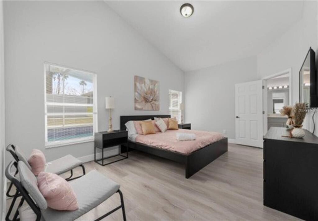 This beautiful fully furnished property for rent is near Disney,is available for rent starting September 1st,2023. House features over 2000 square feet of living space,with 5 bedrooms,3 full bathrooms,and a large,enclosed lanai with a sparkling pool and jacuzzi. The 2 junior master bedrooms have their own ensuite master bathroom and the 2 two twin bedrooms have a shared bathroom.The house is live-in ready,all you need to do is bring your clothes. Come to see this beautiful and modern house! MLS# S5136164