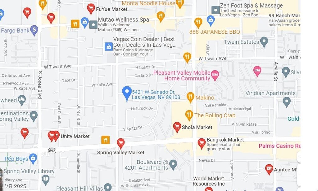 Está localizado en el barrio Spring Valley, 5421 W Ganado Dr en el código postal 89103 de Las Vegas, NV.